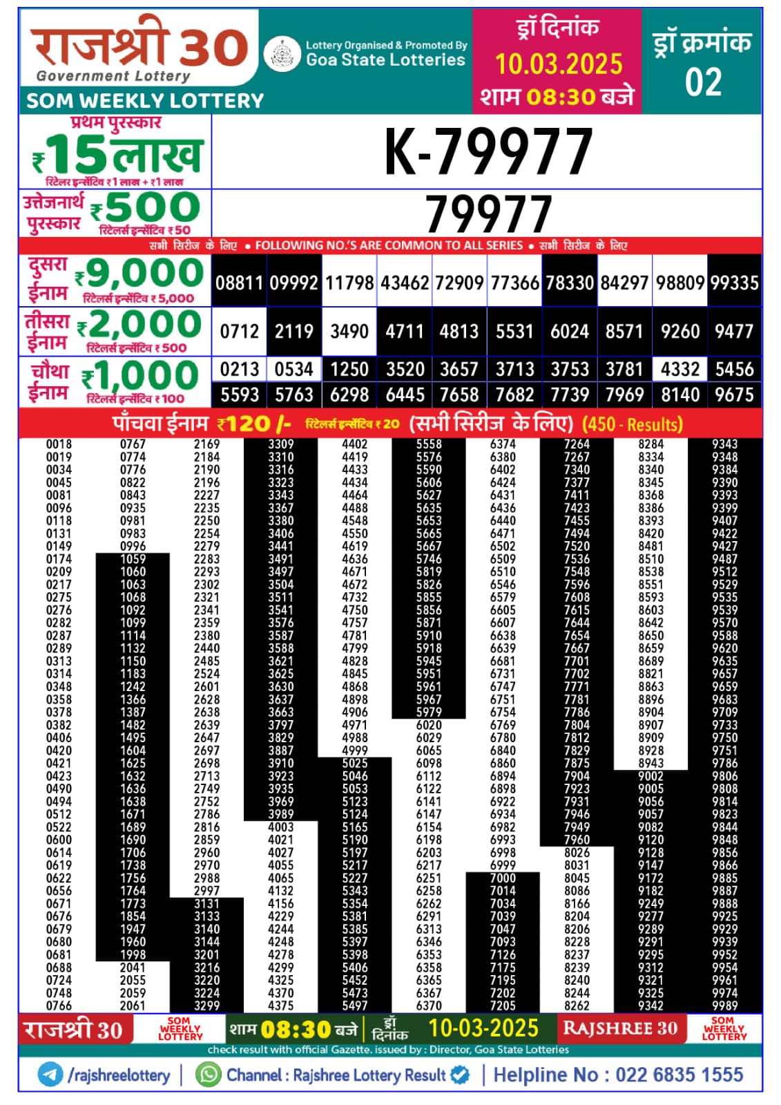 राजश्री 30 लाटरी का रात 8:30 बजे का रिज़ल्ट दिनांक 24.7.25