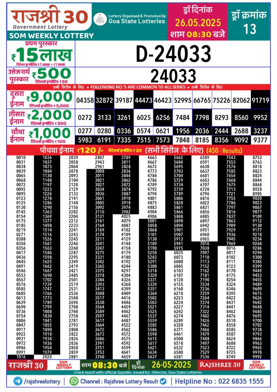 राजश्री 30 लाटरी का रात 8:30 बजे का रिज़ल्ट दिनांक 26.5.25