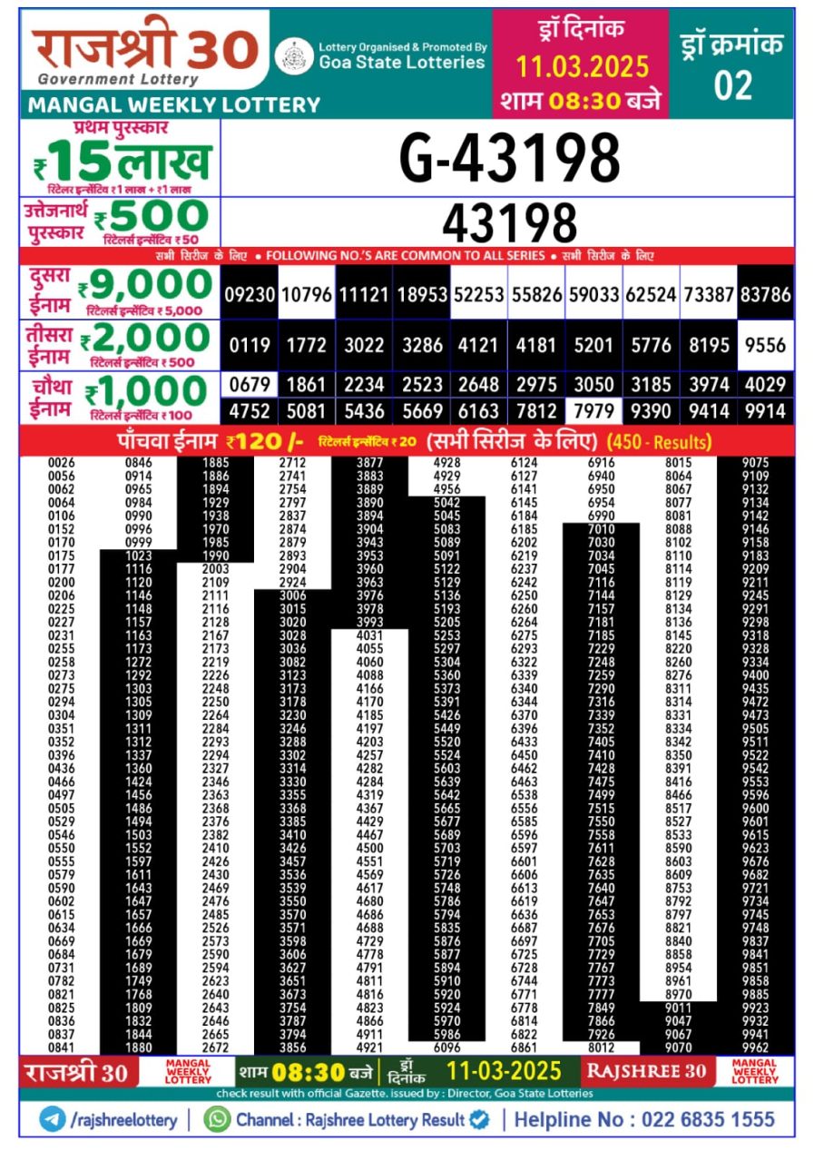 राजश्री 30 लाटरी का रात 8:30 बजे का रिज़ल्ट दिनांक 23.7.25