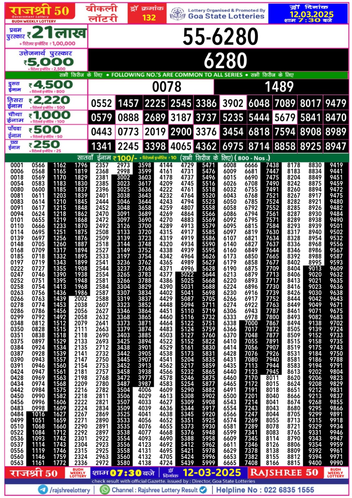 राजश्री 50 लाटरी का रात 7:30 बजे का रिज़ल्ट दिनांक 28.10.25