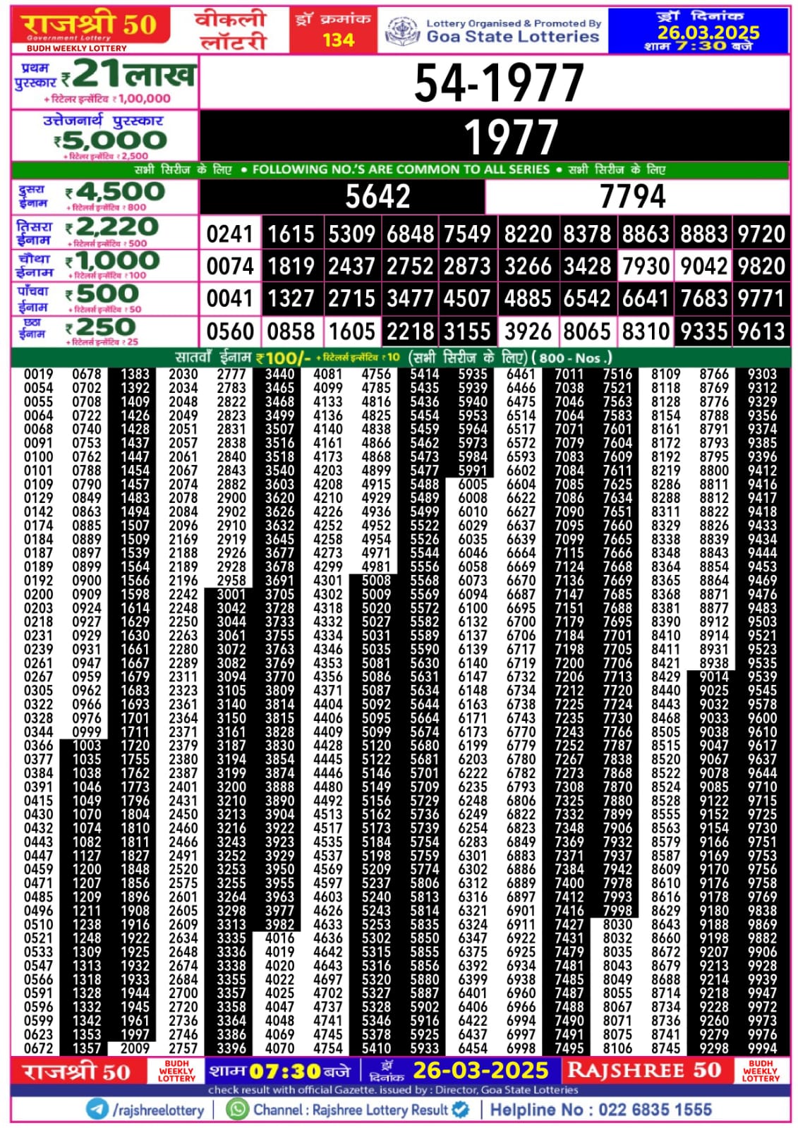 राजश्री 50 लाटरी का रात 7:30 बजे का रिज़ल्ट दिनांक 11.11.25