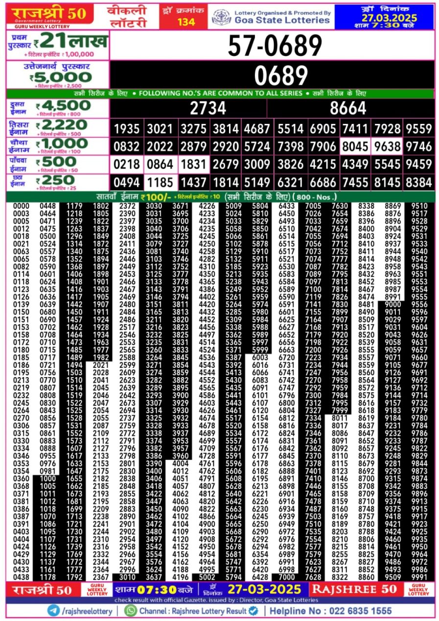 राजश्री 50 लाटरी का रात 7:30 बजे का रिज़ल्ट दिनांक 12.11.25