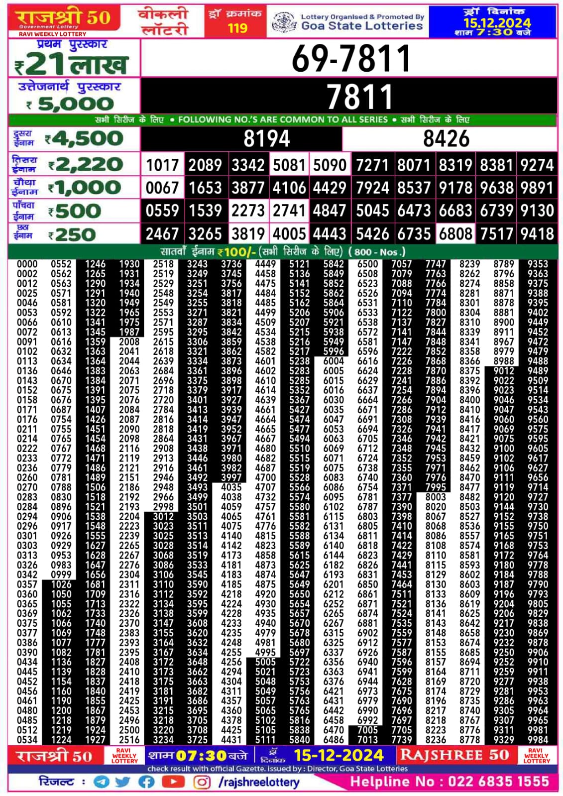 राजश्री 50 लाटरी का रात 7:30 बजे का रिज़ल्ट दिनांक 14.8.25