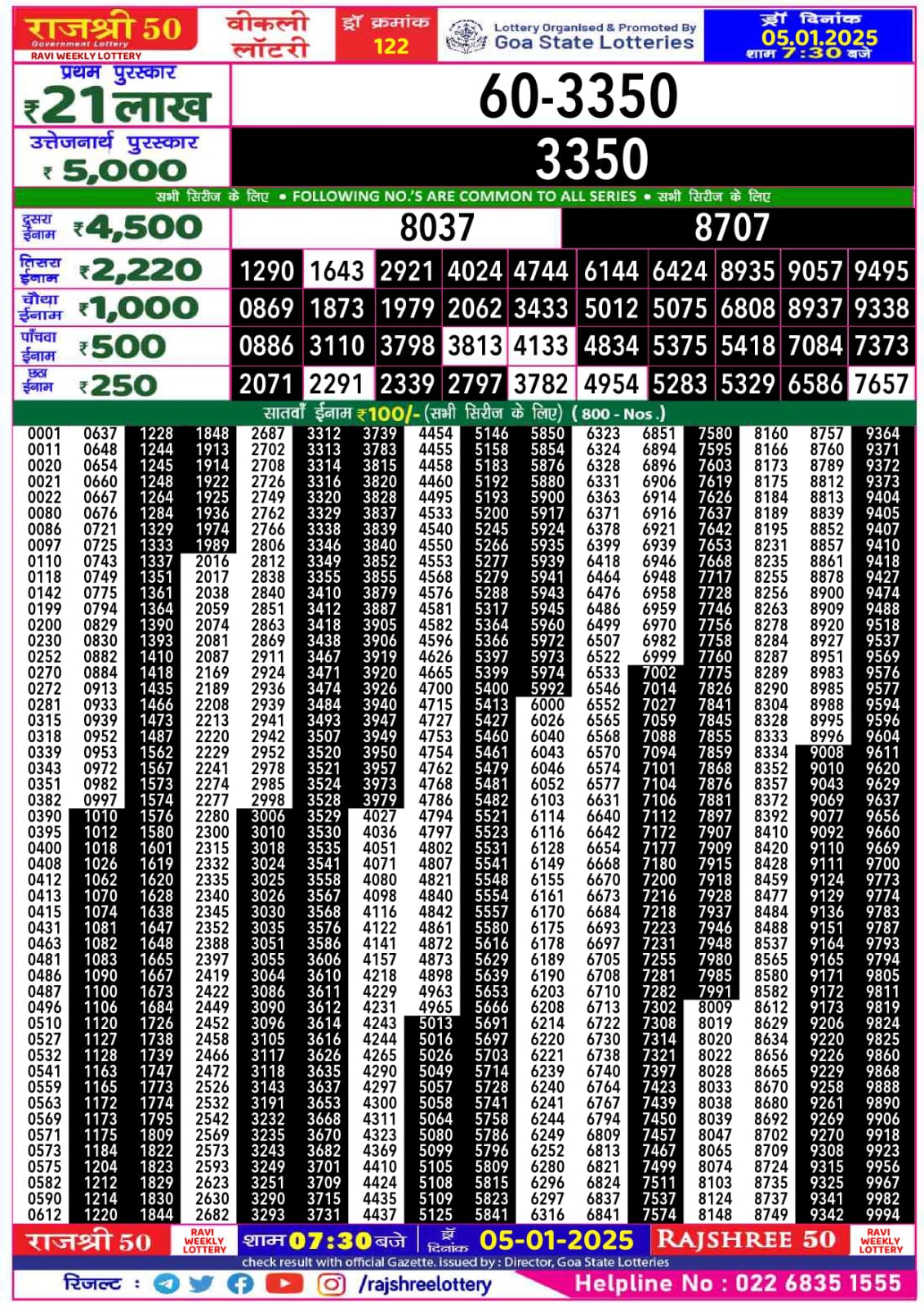 राजश्री 50 लाटरी का रात 7:30 बजे का रिज़ल्ट दिनांक 25.8.25