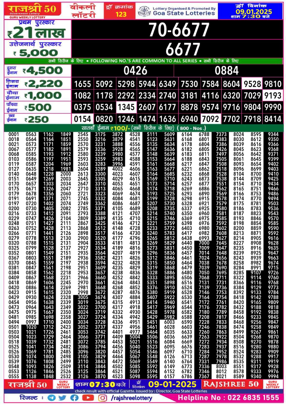 राजश्री 50 लाटरी का रात 7:30 बजे का रिज़ल्ट दिनांक 21.8.25