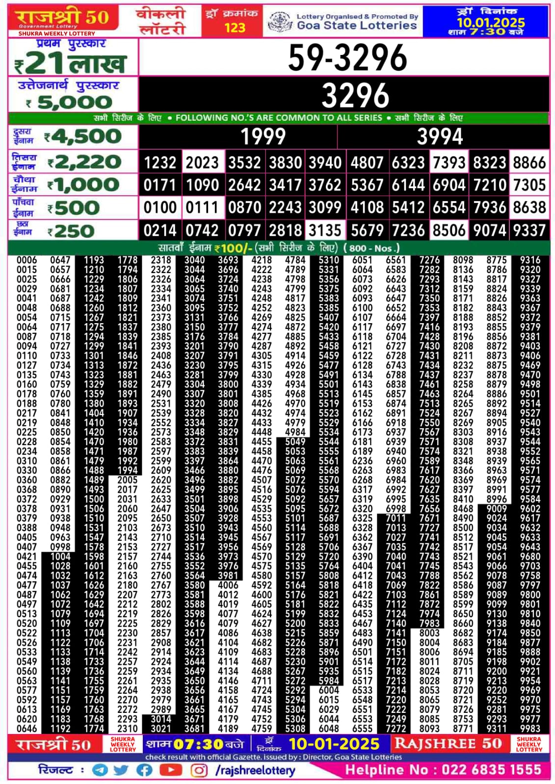 राजश्री 50 लाटरी का रात 7:30 बजे का रिज़ल्ट दिनांक 20.8.25