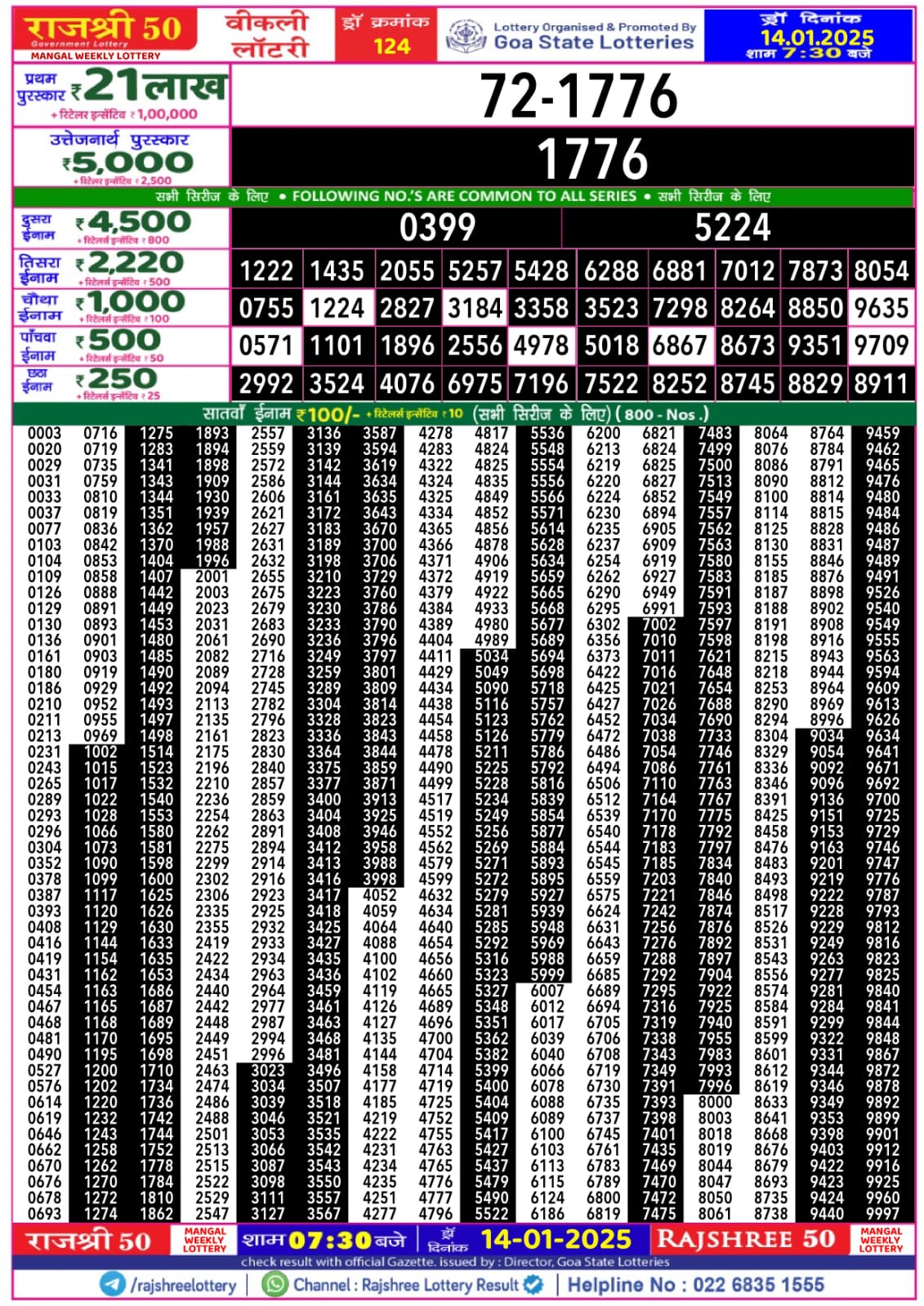 राजश्री 50 लाटरी का रात 7:30 बजे का रिज़ल्ट दिनांक 16.8.25