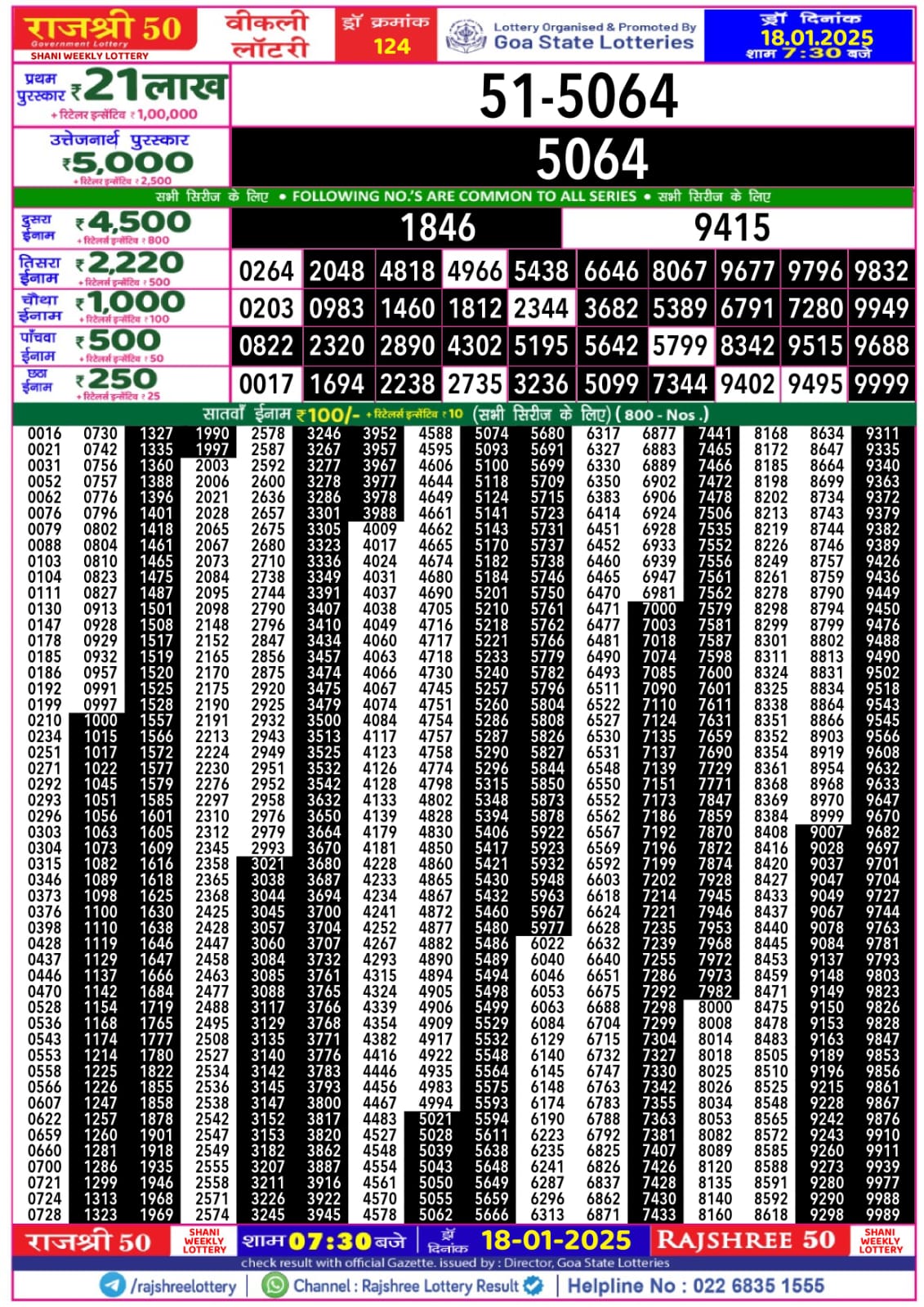 राजश्री 50 लाटरी का रात 7:30 बजे का रिज़ल्ट दिनांक 05.9.25