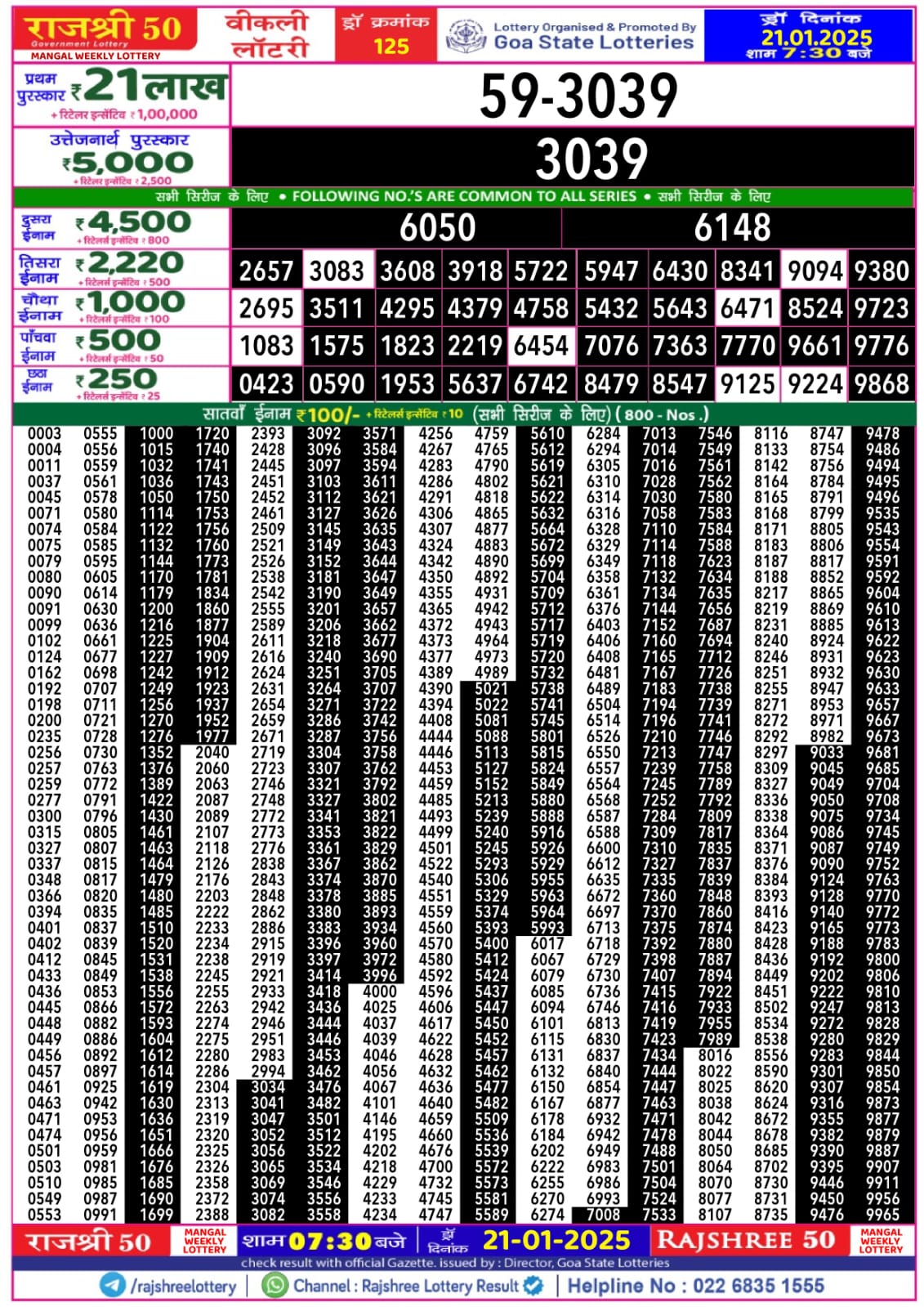 राजश्री 50 लाटरी का रात 7:30 बजे का रिज़ल्ट दिनांक 08.9.25