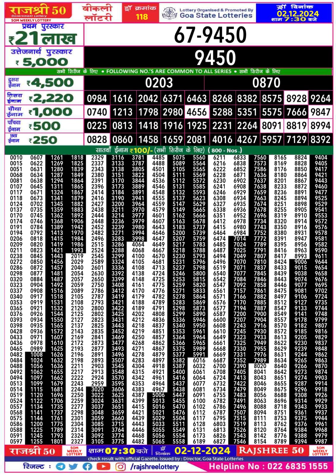 राजश्री 50 लाटरी का रात 7:30 बजे का रिज़ल्ट दिनांक 26.7.25