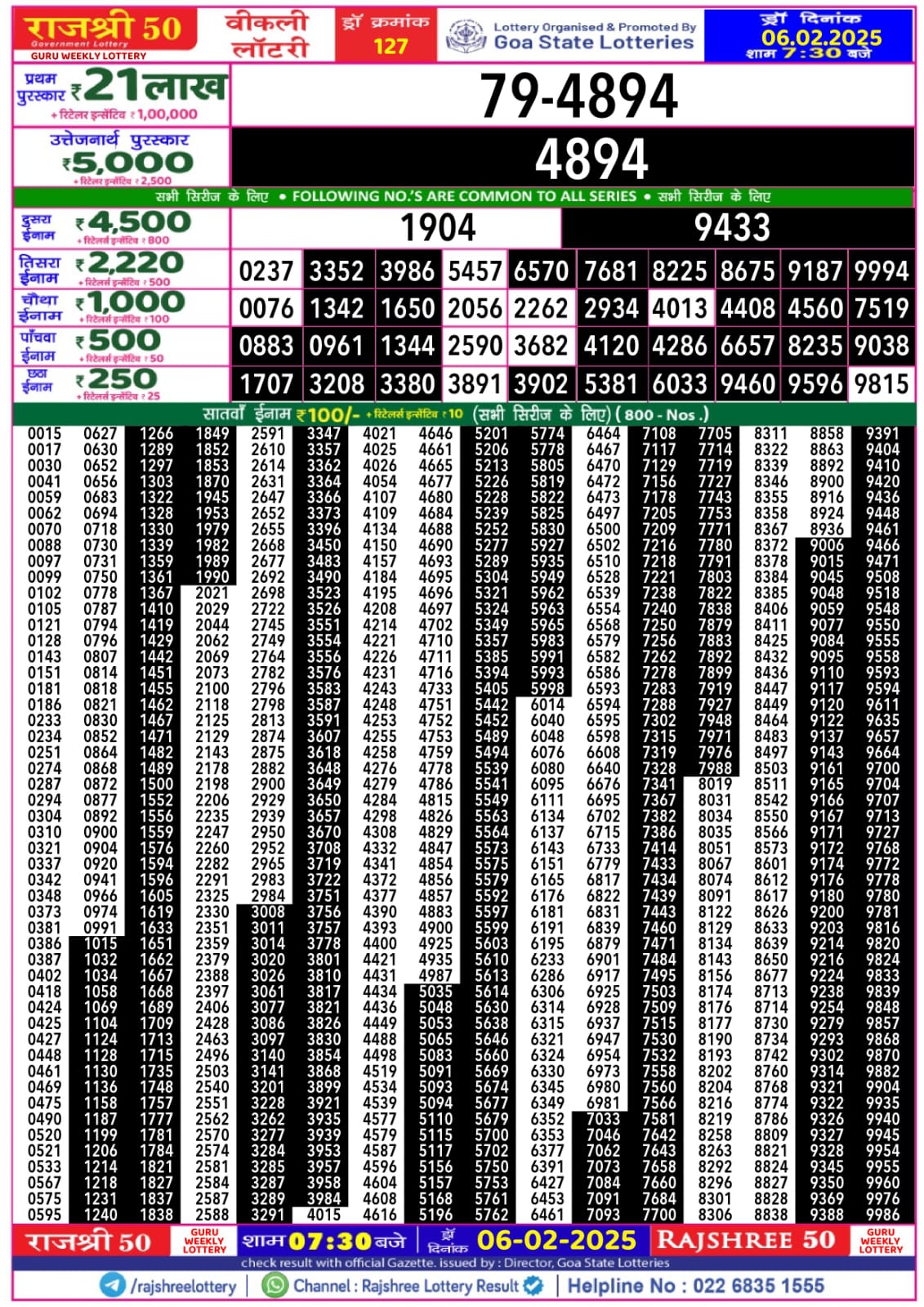 राजश्री 50 लाटरी का रात 7:30 बजे का रिज़ल्ट दिनांक 23.9.25