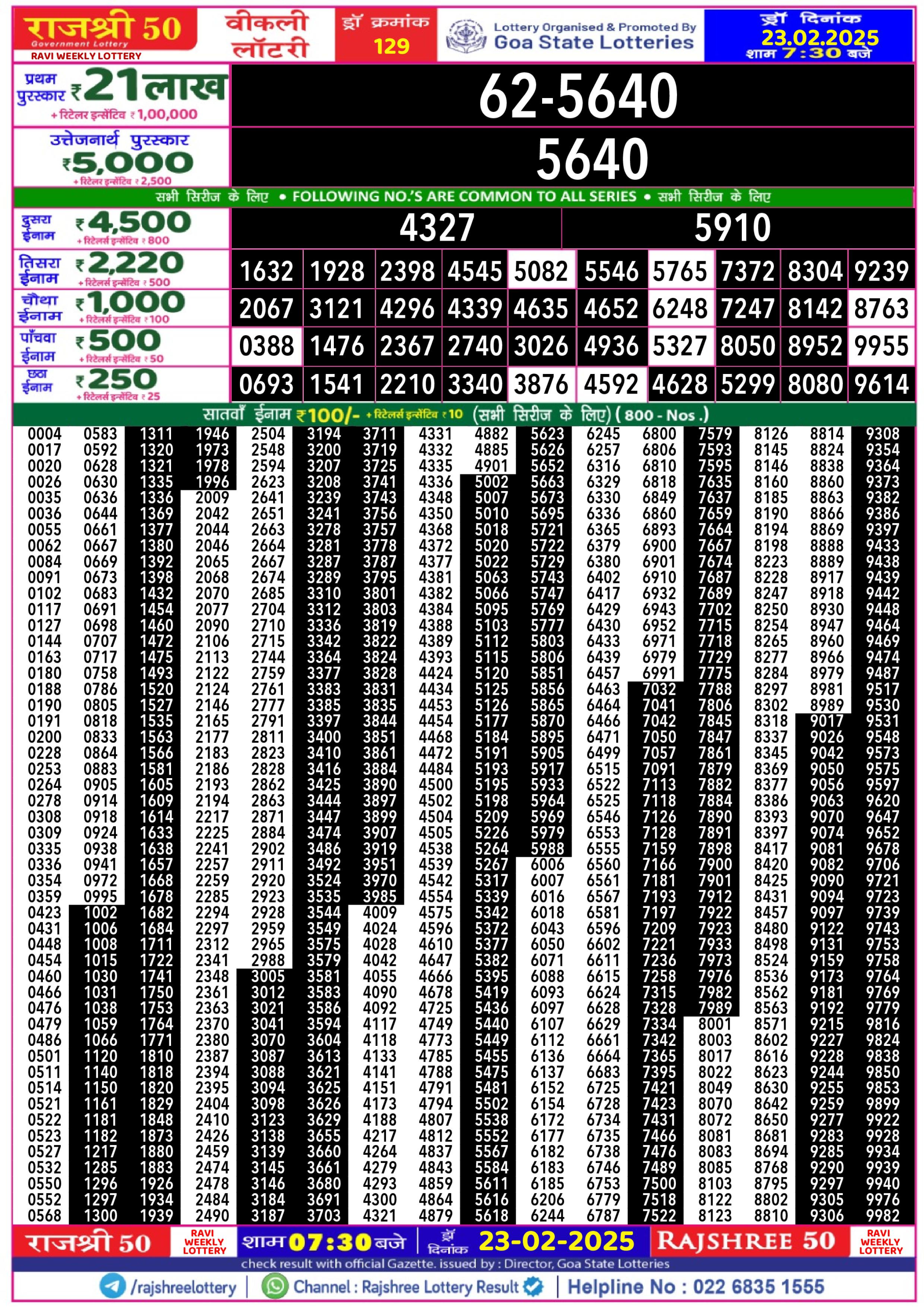 राजश्री 50 लाटरी का रात 7:30 बजे का रिज़ल्ट दिनांक 11.10.25