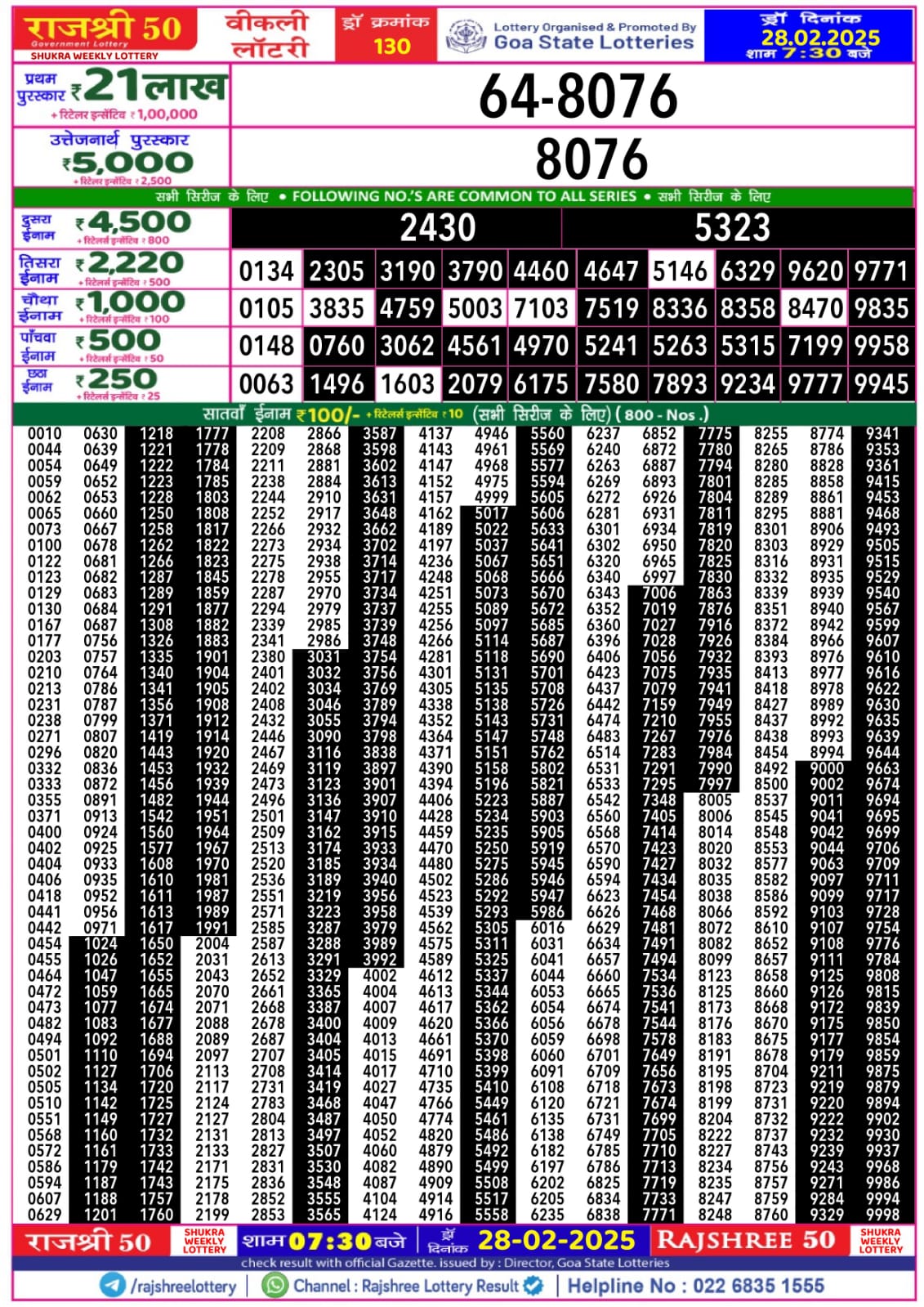 राजश्री 50 लाटरी का रात 7:30 बजे का रिज़ल्ट दिनांक 16.10.25