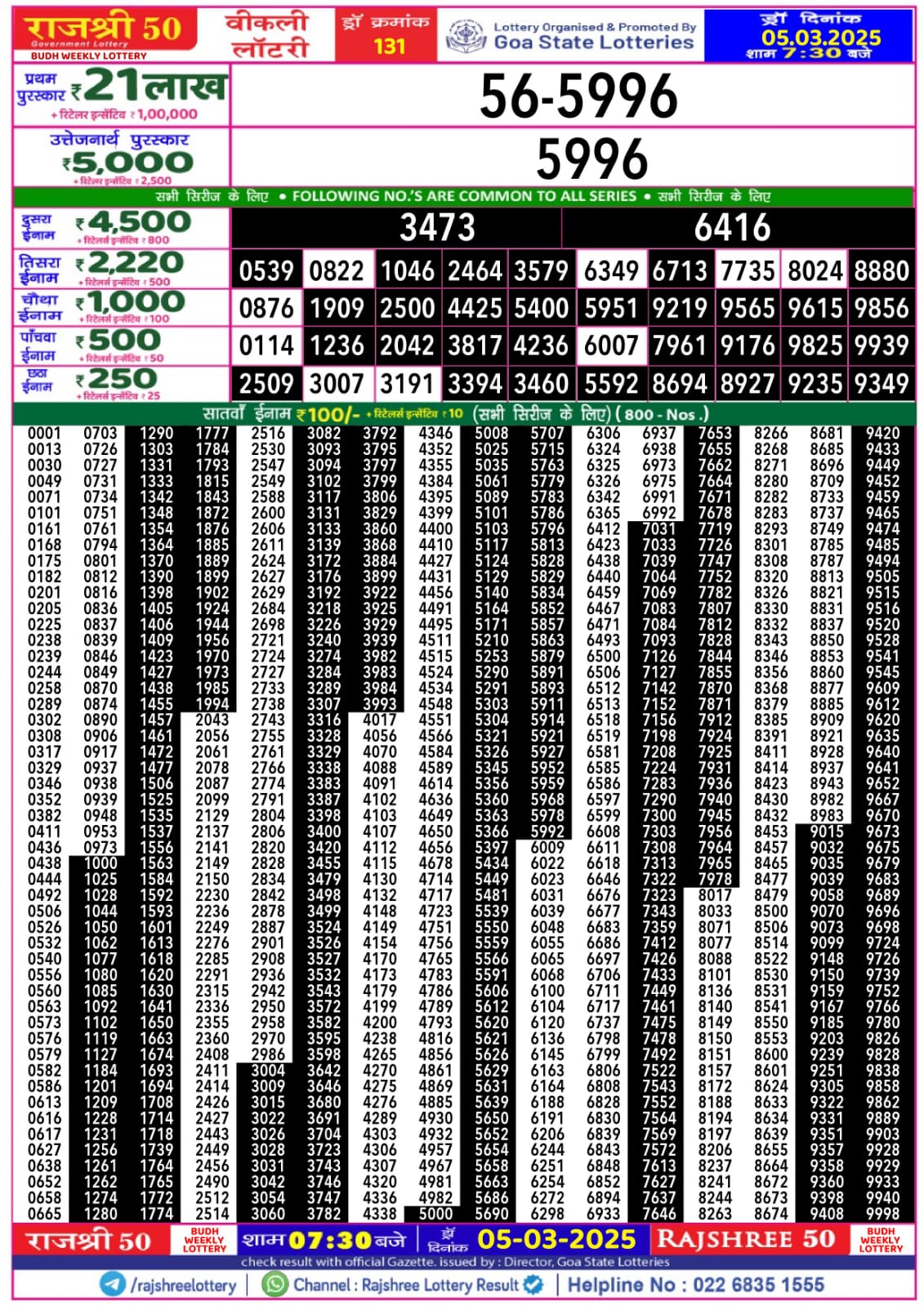 राजश्री 50 लाटरी का रात 7:30 बजे का रिज़ल्ट दिनांक 21.10.25