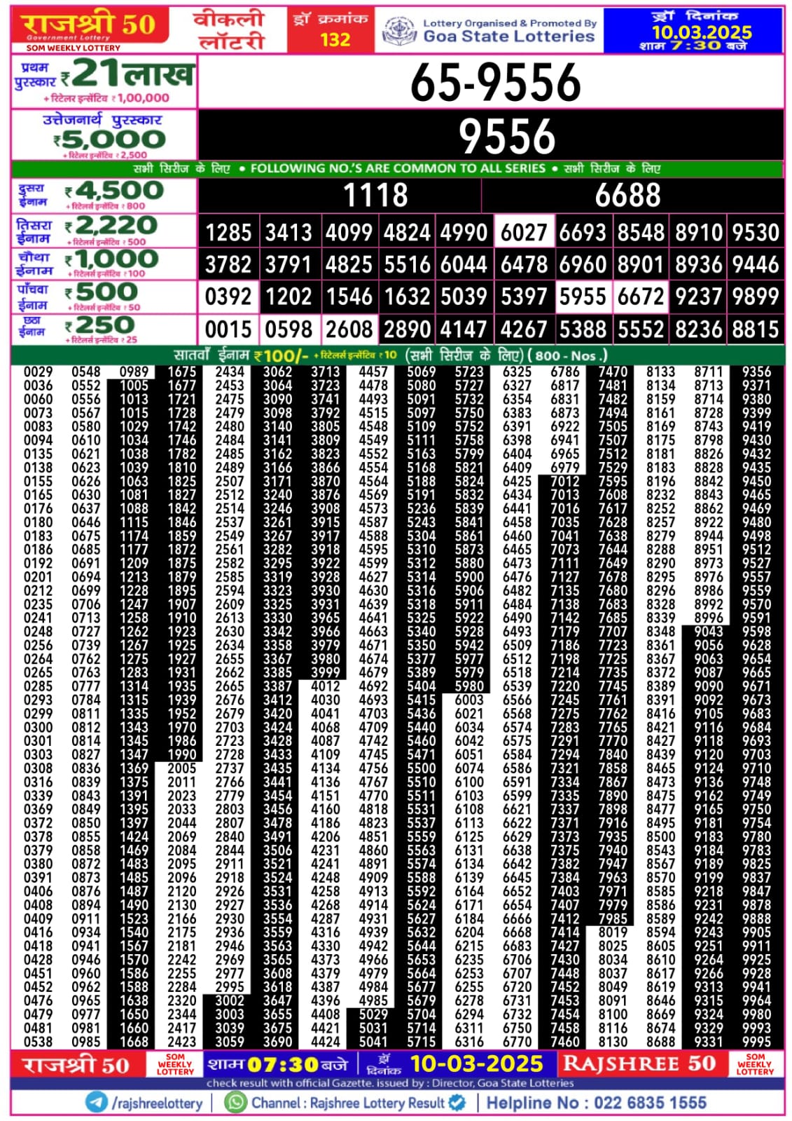 राजश्री 50 लाटरी का रात 7:30 बजे का रिज़ल्ट दिनांक 26.10.25