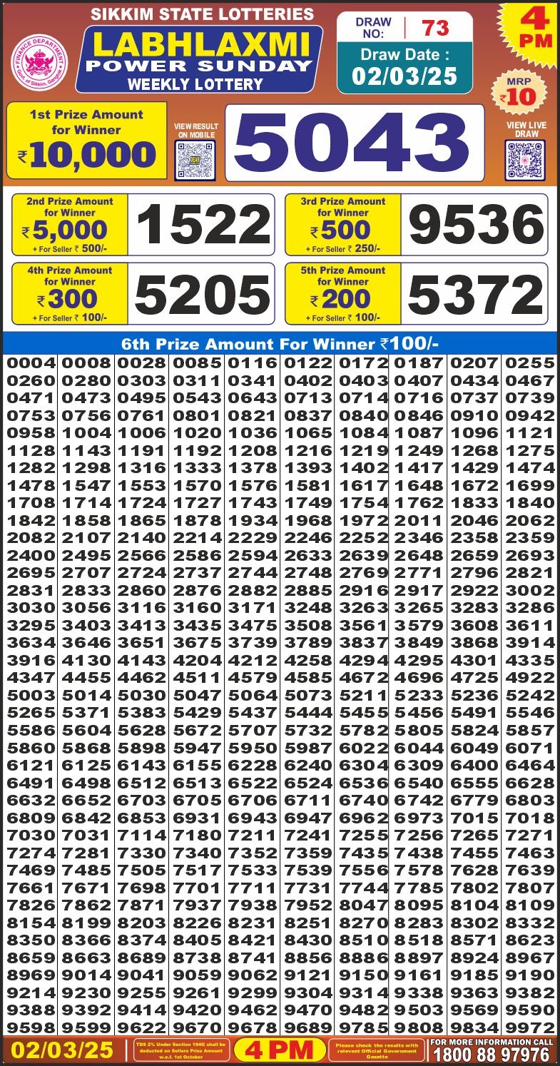 Nagaland State Lotteries was established in the year 1972 under the supervision of the Finance Department to generate a dependable source of revenue for the State Government. Nagaland State Lottery is held every day of the week at three different times of the day, Morning, Day, and Evening. Every day, the lottery is held under a different name with some difference in the prize money with the top prize worth ₹1 Crore (including Super Prize amount). The daily lotteries hosted by Nagaland State include Dear Morning Lottery, Dear Day Lottery, and Dear Evening Lottery which costs 6 Rupees for each ticket.
