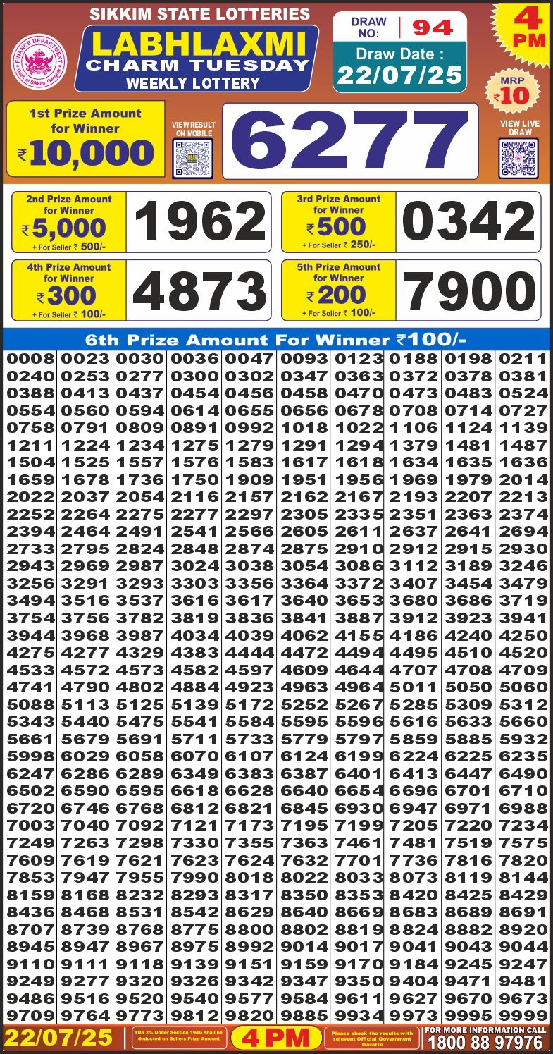 लाभ लक्ष्मी लाटरी 4 बजे दिनांक 22.7.25 का रिज़ल्ट