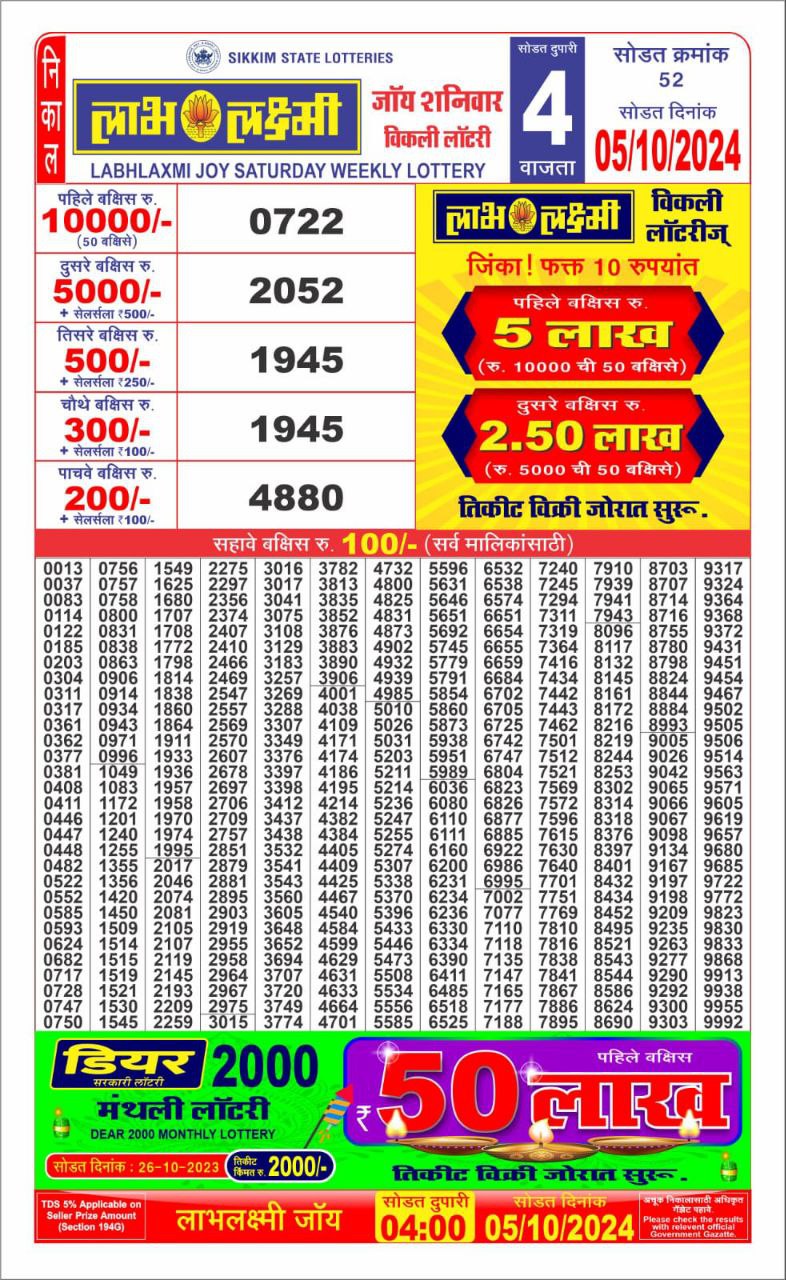 लाभ लक्ष्मी लाटरी 4 बजे दिनांक 24.11.25 का रिजल्ट