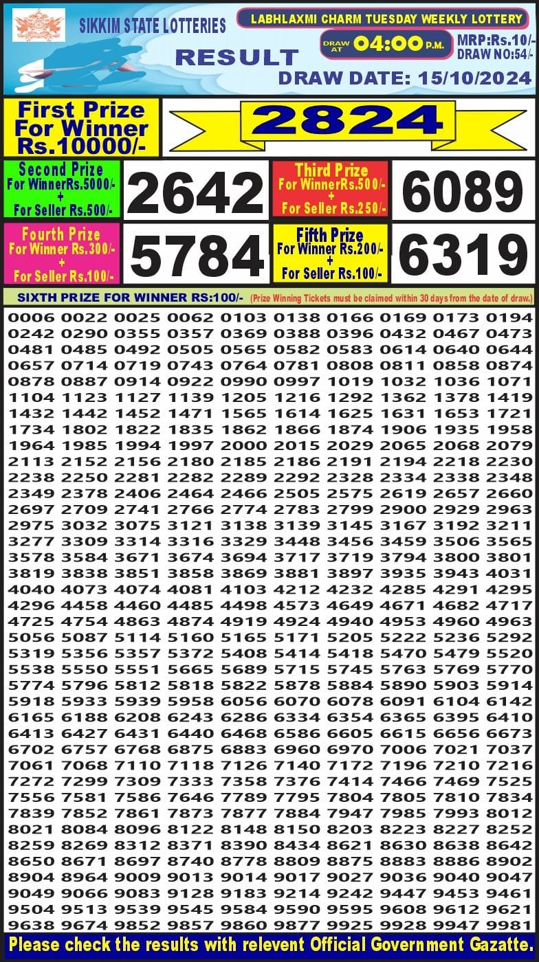 Nagaland State Lotteries was established in the year 1972 under the supervision of the Finance Department to generate a dependable source of revenue for the State Government. Nagaland State Lottery is held every day of the week at three different times of the day, Morning, Day, and Evening. Every day, the lottery is held under a different name with some difference in the prize money with the top prize worth ₹1 Crore (including Super Prize amount). The daily lotteries hosted by Nagaland State include Dear Morning Lottery, Dear Day Lottery, and Dear Evening Lottery which costs 6 Rupees for each ticket.