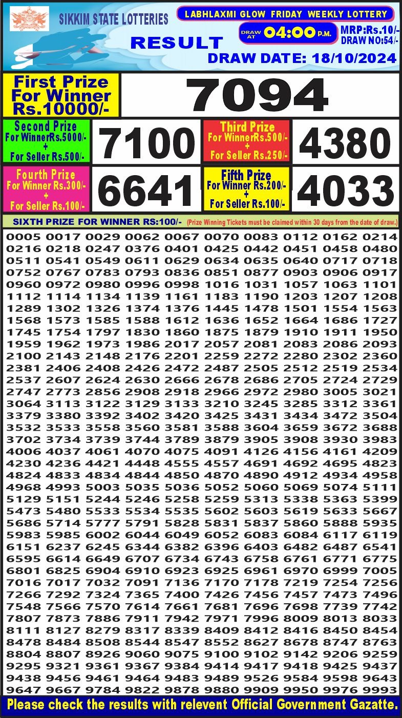 लाभ लक्ष्मी लाटरी 4 बजे दिनांक 07.12.25 का रिजल्ट