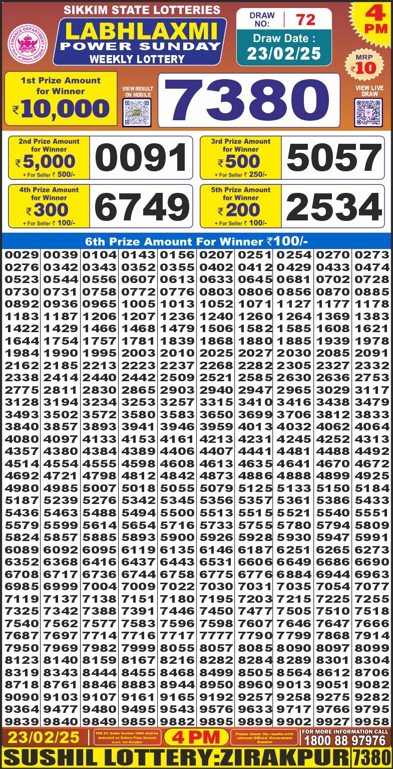 Nagaland State Lotteries was established in the year 1972 under the supervision of the Finance Department to generate a dependable source of revenue for the State Government. Nagaland State Lottery is held every day of the week at three different times of the day, Morning, Day, and Evening. Every day, the lottery is held under a different name with some difference in the prize money with the top prize worth ₹1 Crore (including Super Prize amount). The daily lotteries hosted by Nagaland State include Dear Morning Lottery, Dear Day Lottery, and Dear Evening Lottery which costs 6 Rupees for each ticket.