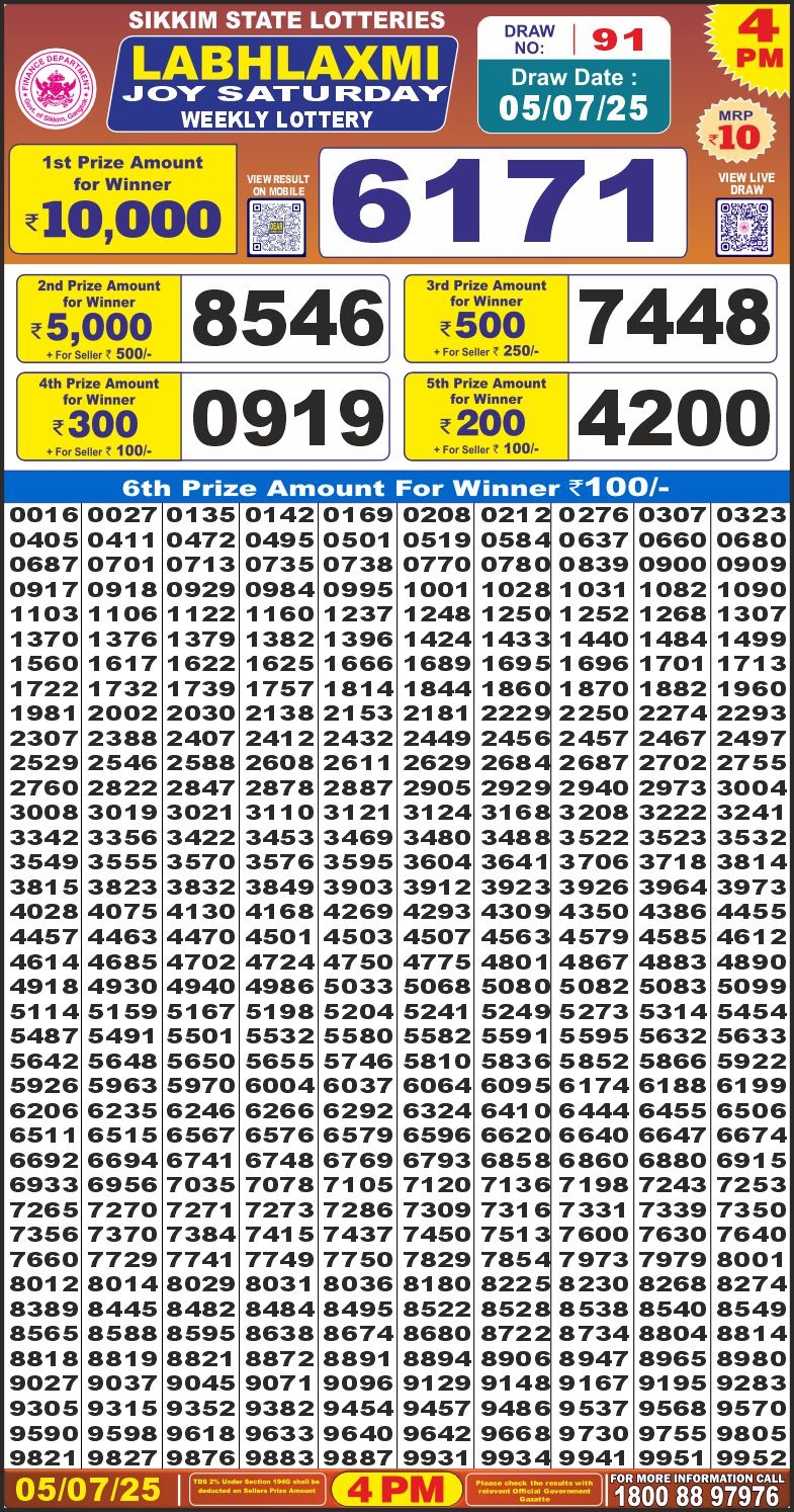 लाभ लक्ष्मी लाटरी 4 बजे दिनांक 05.7.25 का रिज़ल्ट