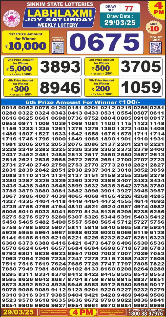 लाभ लक्ष्मी लाटरी 4 बजे दिनांक 24.8.25 का रिज़ल्ट