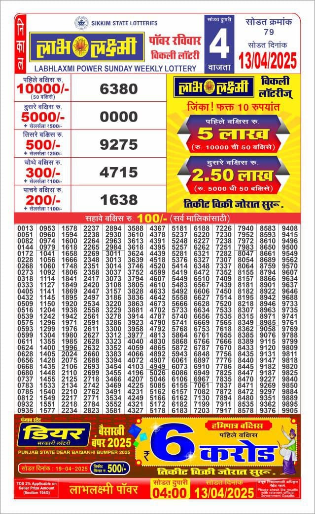 लाभ लक्ष्मी लाटरी 4 बजे दिनांक 08.9.25 का रिज़ल्ट