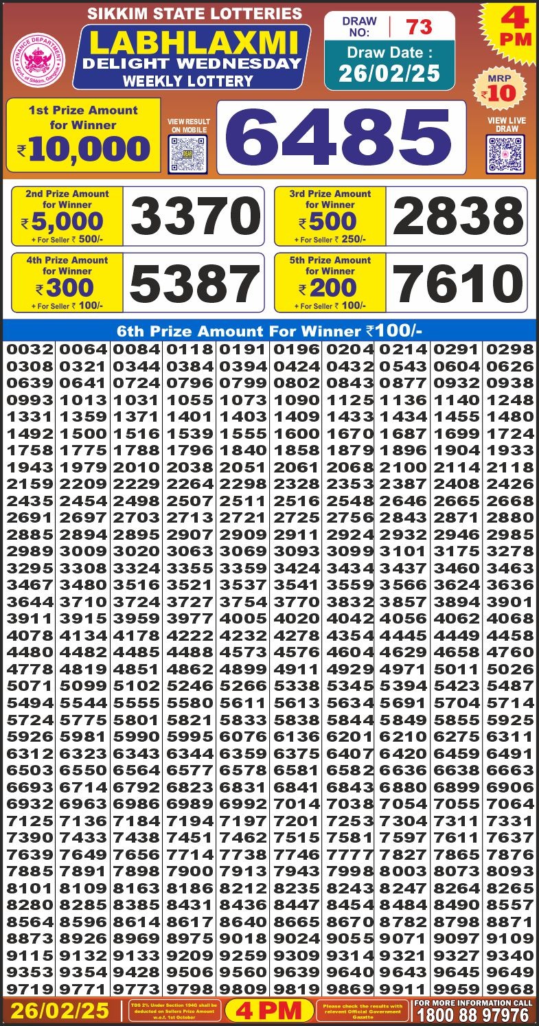 Nagaland State Lotteries was established in the year 1972 under the supervision of the Finance Department to generate a dependable source of revenue for the State Government. Nagaland State Lottery is held every day of the week at three different times of the day, Morning, Day, and Evening. Every day, the lottery is held under a different name with some difference in the prize money with the top prize worth ₹1 Crore (including Super Prize amount). The daily lotteries hosted by Nagaland State include Dear Morning Lottery, Dear Day Lottery, and Dear Evening Lottery which costs 6 Rupees for each ticket.