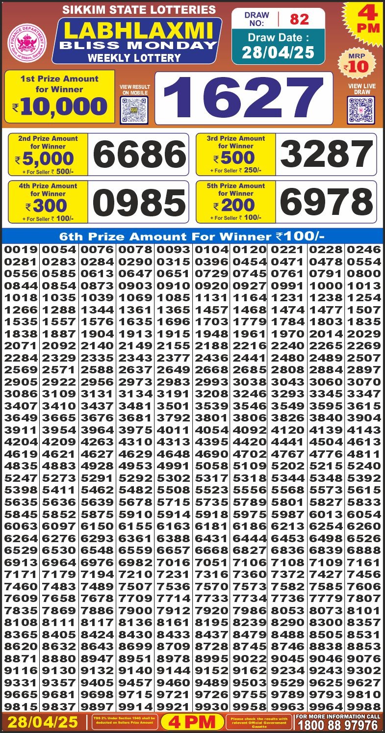 Nagaland State Lotteries was established in the year 1972 under the supervision of the Finance Department to generate a dependable source of revenue for the State Government. Nagaland State Lottery is held every day of the week at three different times of the day, Morning, Day, and Evening. Every day, the lottery is held under a different name with some difference in the prize money with the top prize worth ₹1 Crore (including Super Prize amount). The daily lotteries hosted by Nagaland State include Dear Morning Lottery, Dear Day Lottery, and Dear Evening Lottery which costs 6 Rupees for each ticket.