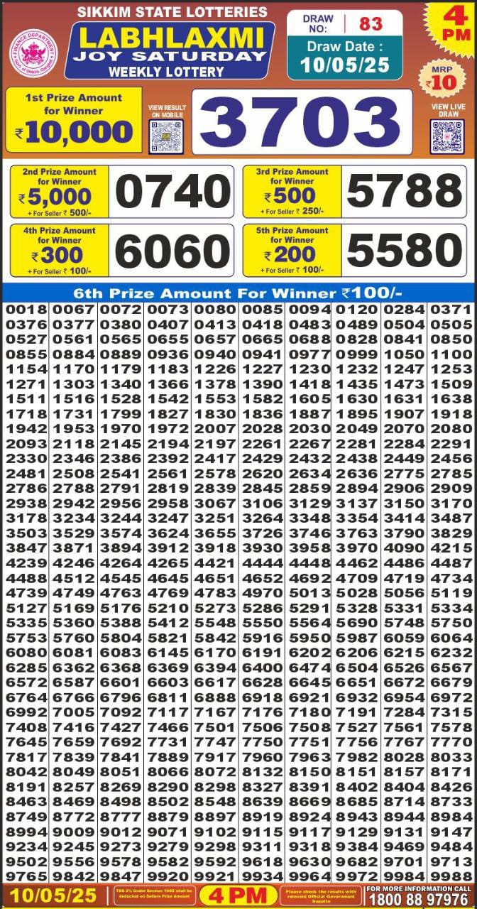 लाभ लक्ष्मी लाटरी 4 बजे दिनांक 06.10.25 का रिजल्ट
