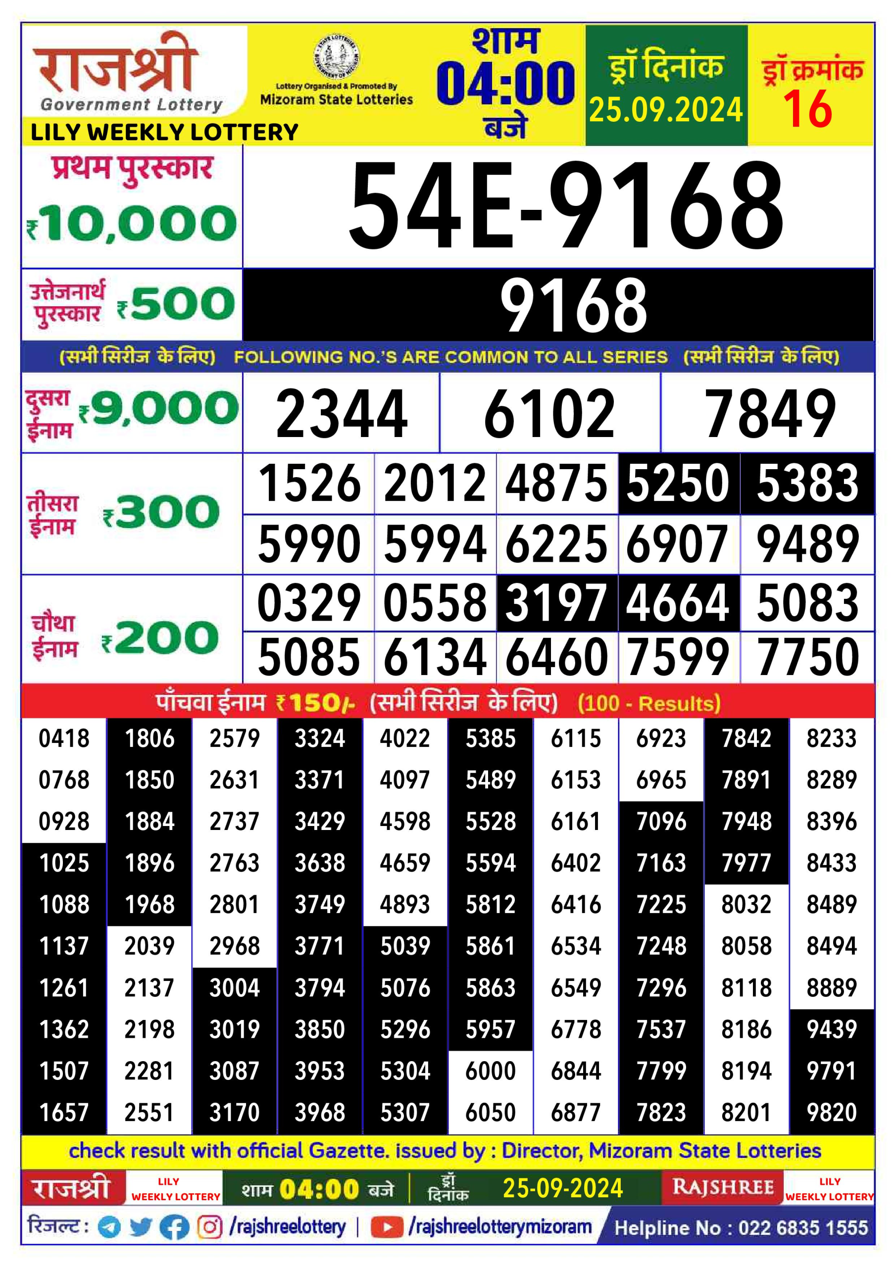 Nagaland State Lotteries was established in the year 1972 under the supervision of the Finance Department to generate a dependable source of revenue for the State Government. Nagaland State Lottery is held every day of the week at three different times of the day, Morning, Day, and Evening. Every day, the lottery is held under a different name with some difference in the prize money with the top prize worth ₹1 Crore (including Super Prize amount). The daily lotteries hosted by Nagaland State include Dear Morning Lottery, Dear Day Lottery, and Dear Evening Lottery which costs 6 Rupees for each ticket.