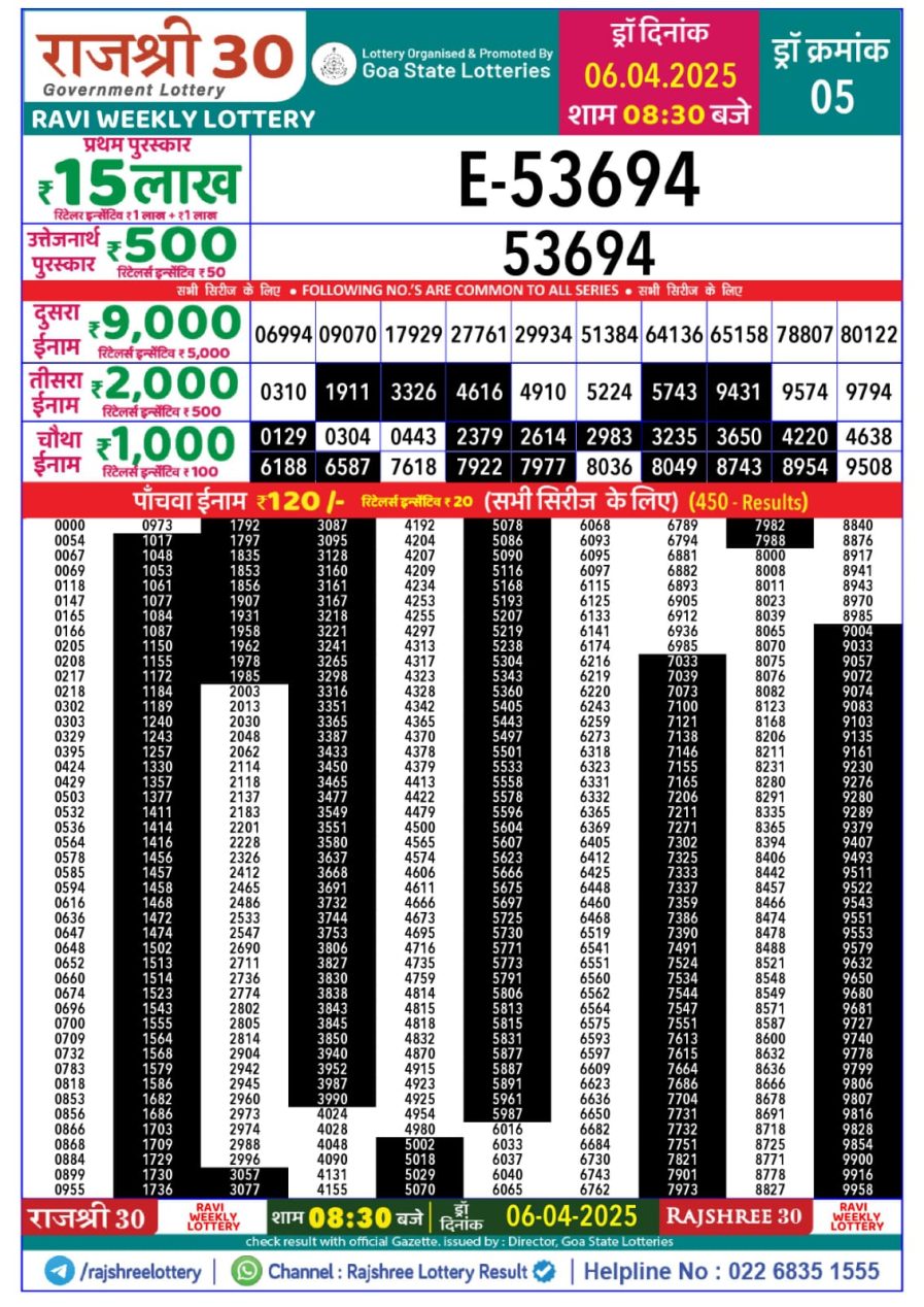 राजश्री 30 लाटरी का रात 8:30 बजे का रिज़ल्ट दिनांक 26.8.25