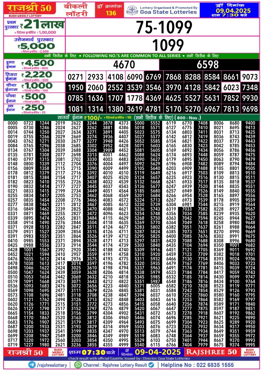 राजश्री 50 लाटरी का रात 7:30 बजे का रिज़ल्ट दिनांक 25.11.25