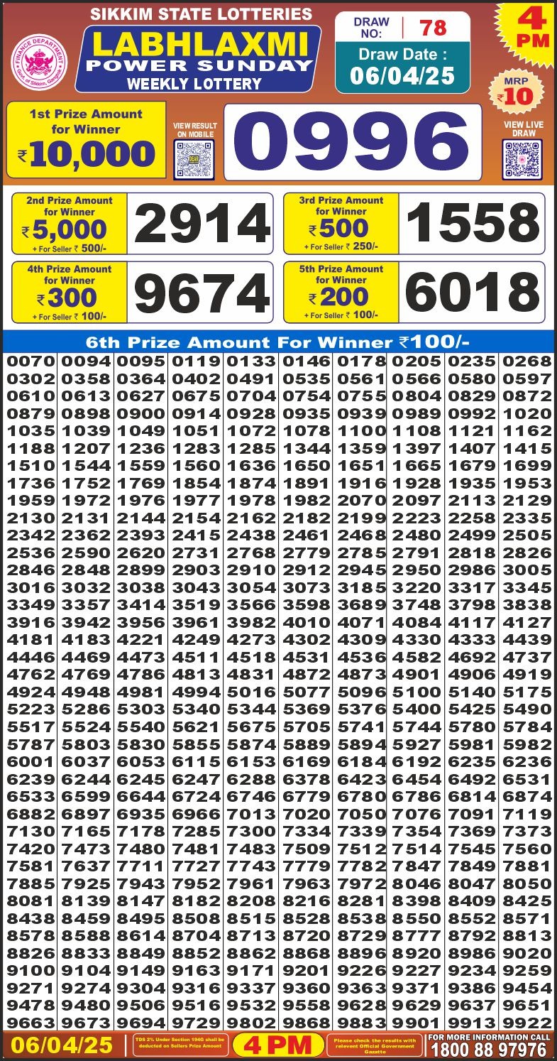 Nagaland State Lotteries was established in the year 1972 under the supervision of the Finance Department to generate a dependable source of revenue for the State Government. Nagaland State Lottery is held every day of the week at three different times of the day, Morning, Day, and Evening. Every day, the lottery is held under a different name with some difference in the prize money with the top prize worth ₹1 Crore (including Super Prize amount). The daily lotteries hosted by Nagaland State include Dear Morning Lottery, Dear Day Lottery, and Dear Evening Lottery which costs 6 Rupees for each ticket.