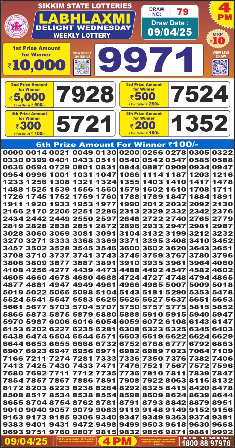 लाभ लक्ष्मी लाटरी 4 बजे दिनांक 04.9.25 का रिज़ल्ट