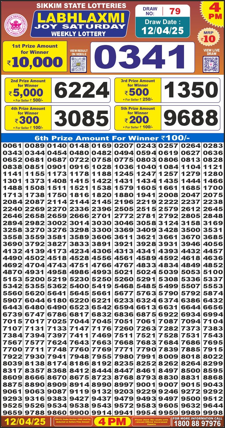 Nagaland State Lotteries was established in the year 1972 under the supervision of the Finance Department to generate a dependable source of revenue for the State Government. Nagaland State Lottery is held every day of the week at three different times of the day, Morning, Day, and Evening. Every day, the lottery is held under a different name with some difference in the prize money with the top prize worth ₹1 Crore (including Super Prize amount). The daily lotteries hosted by Nagaland State include Dear Morning Lottery, Dear Day Lottery, and Dear Evening Lottery which costs 6 Rupees for each ticket.