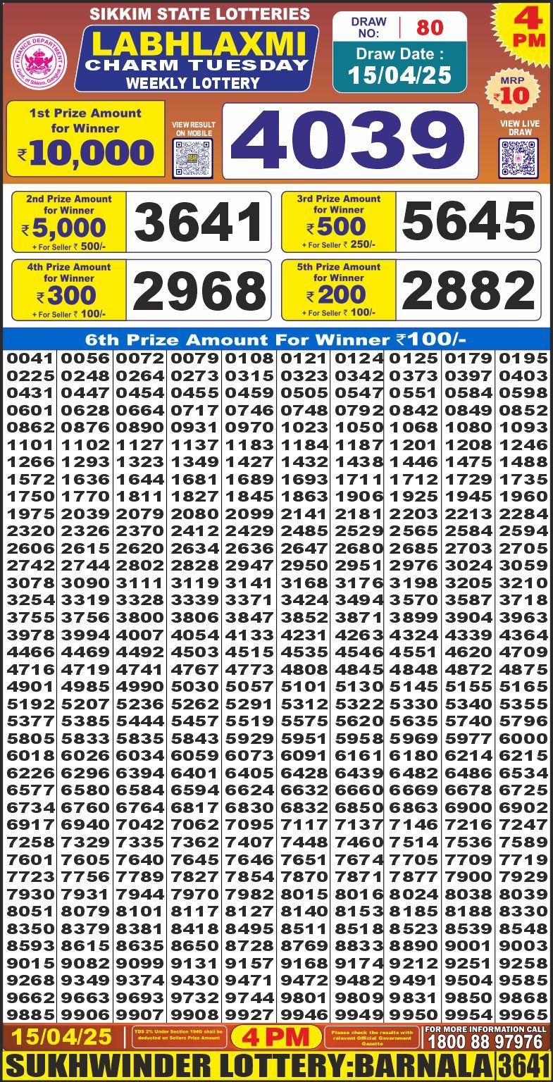 लाभ लक्ष्मी लाटरी 4 बजे दिनांक 10.9.25 का रिज़ल्ट