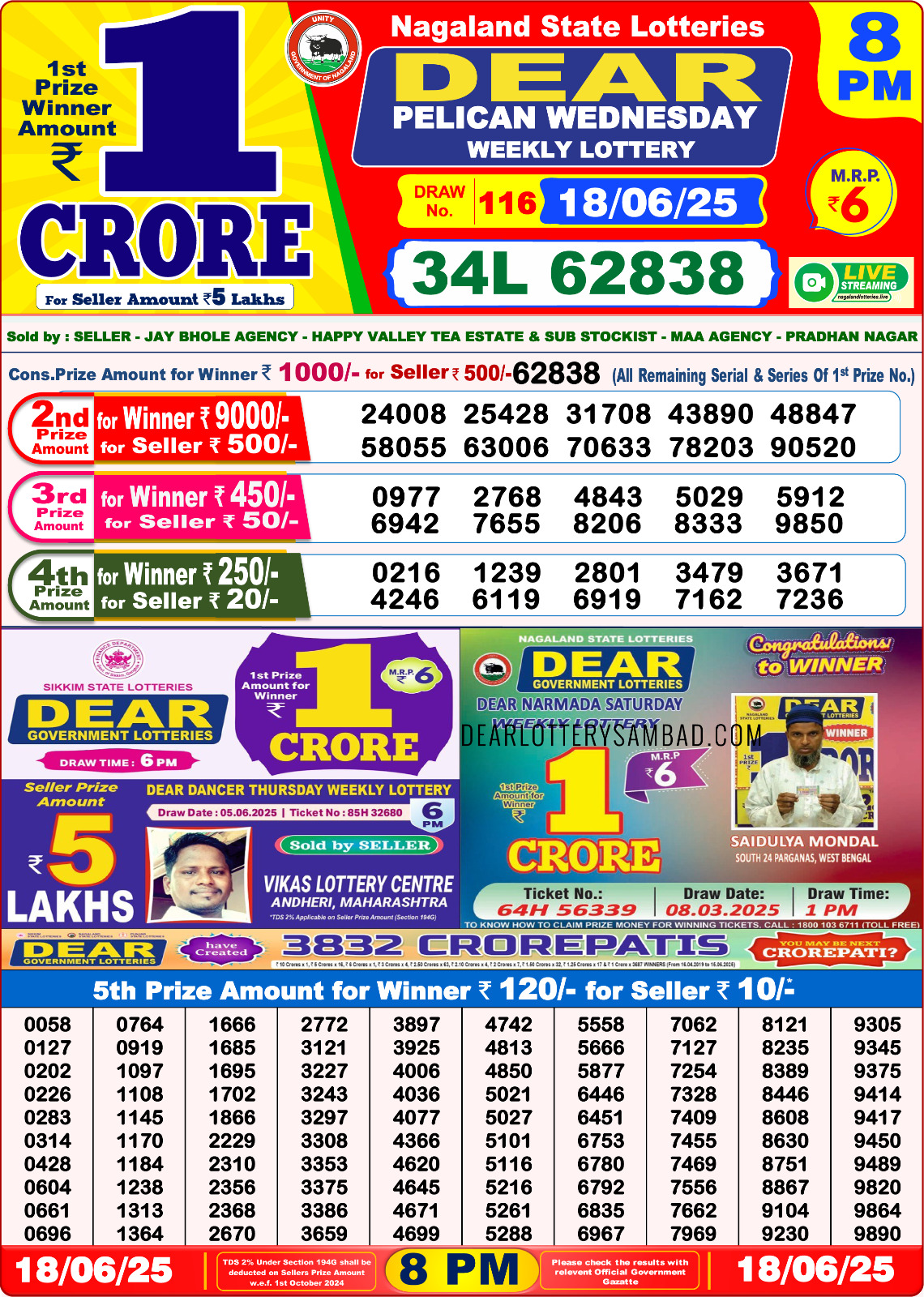 डिअर लाटरी का रात 8 बजे का रिज़ल्ट दिनांक 18.11.25