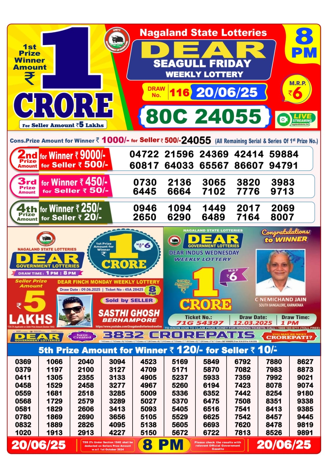 डिअर लाटरी का रात 8 बजे का रिज़ल्ट दिनांक 20.11.25