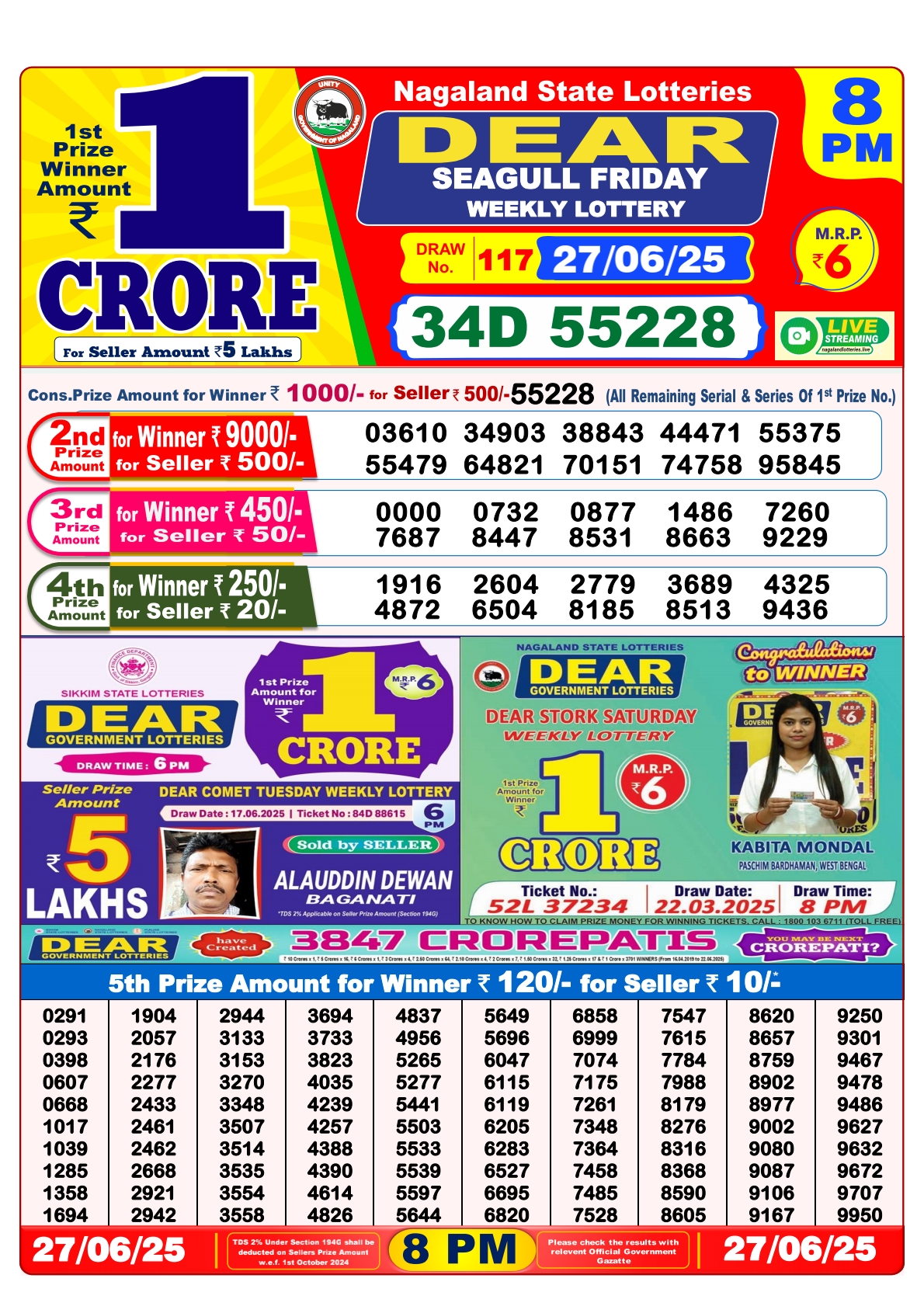 डिअर लाटरी का रात 8 बजे का रिज़ल्ट दिनांक 27.11.25