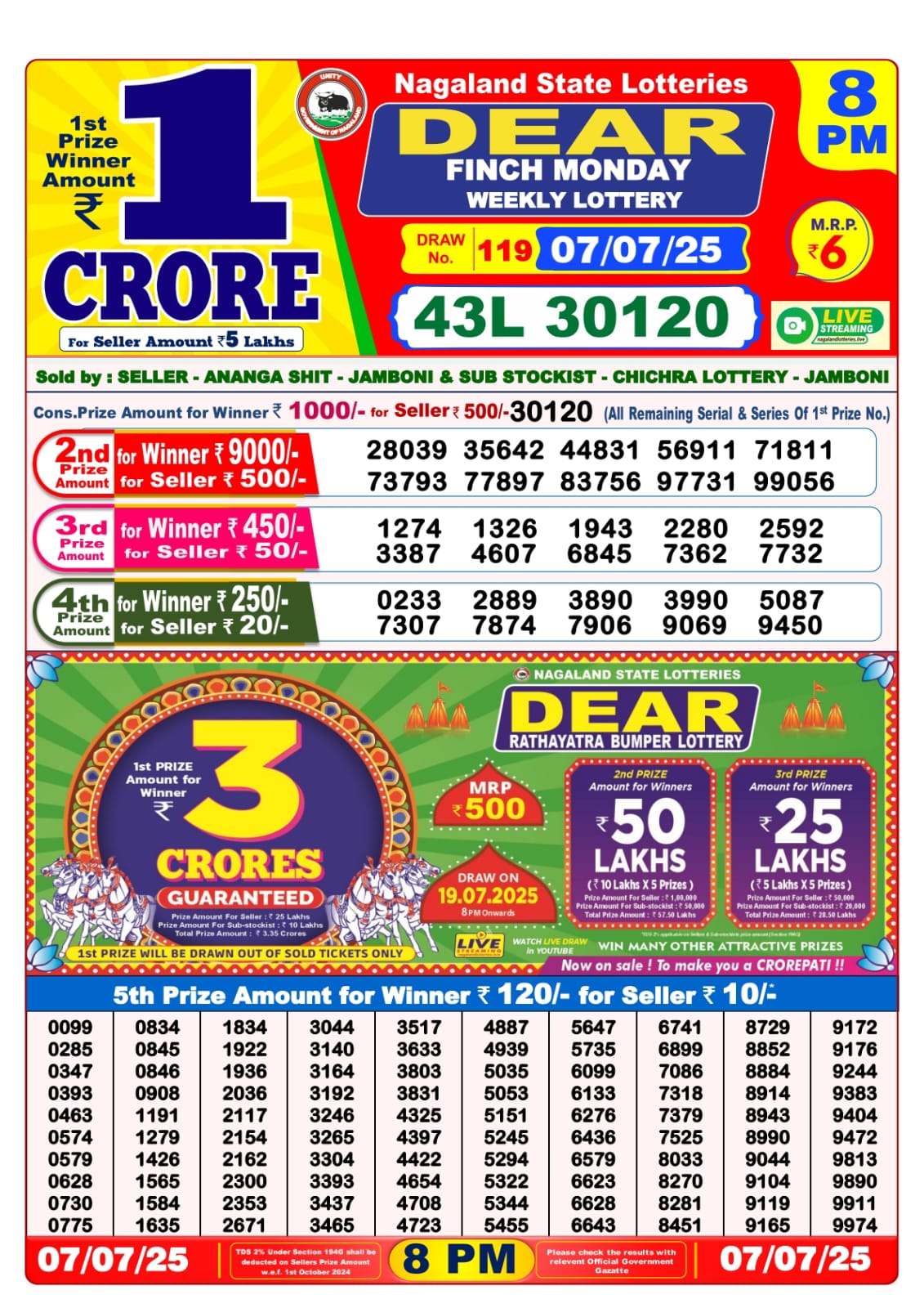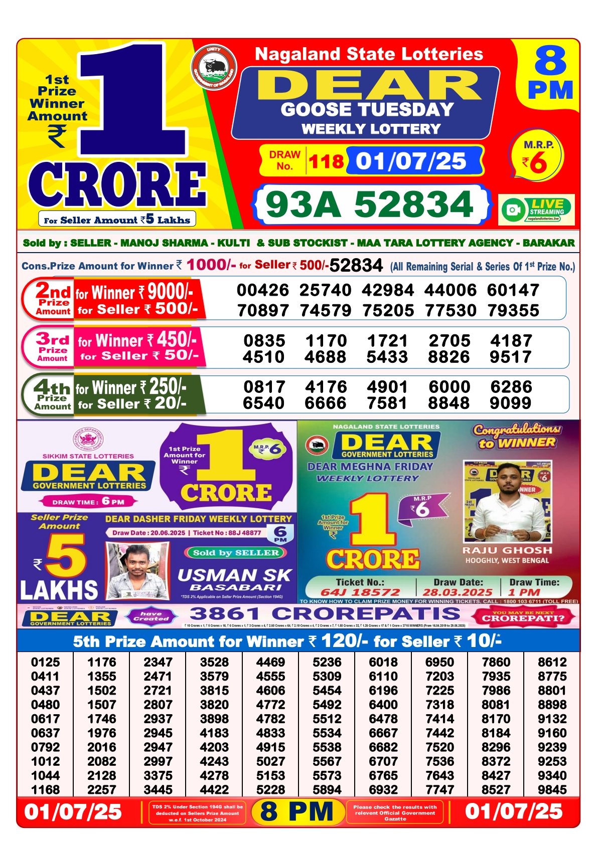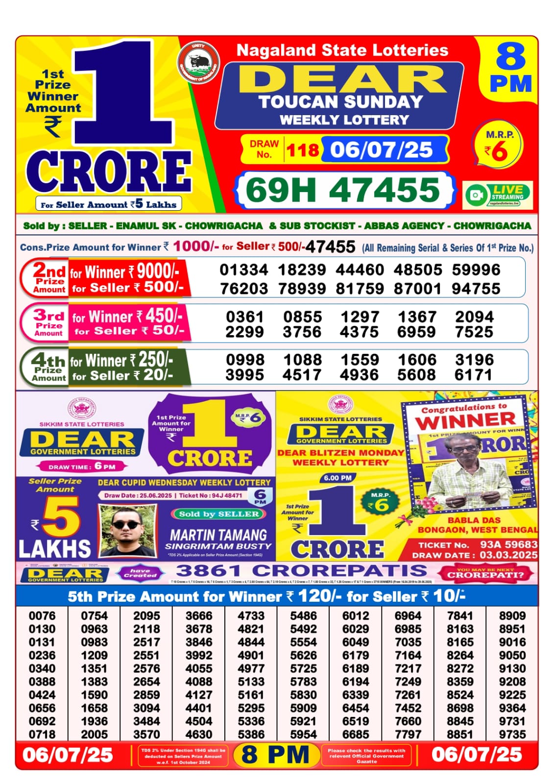 डिअर लाटरी का रात 8 बजे का रिज़ल्ट दिनांक 07.12.25