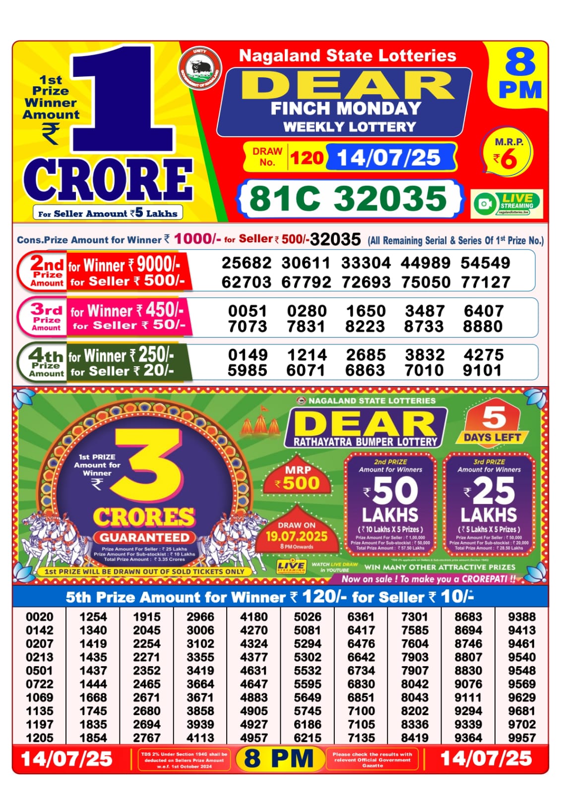 डिअर लाटरी का रात 8 बजे का रिज़ल्ट दिनांक 13.12.25