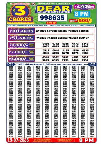 डिअर लाटरी का रात 8 बजे का रिज़ल्ट दिनांक 19.11.25