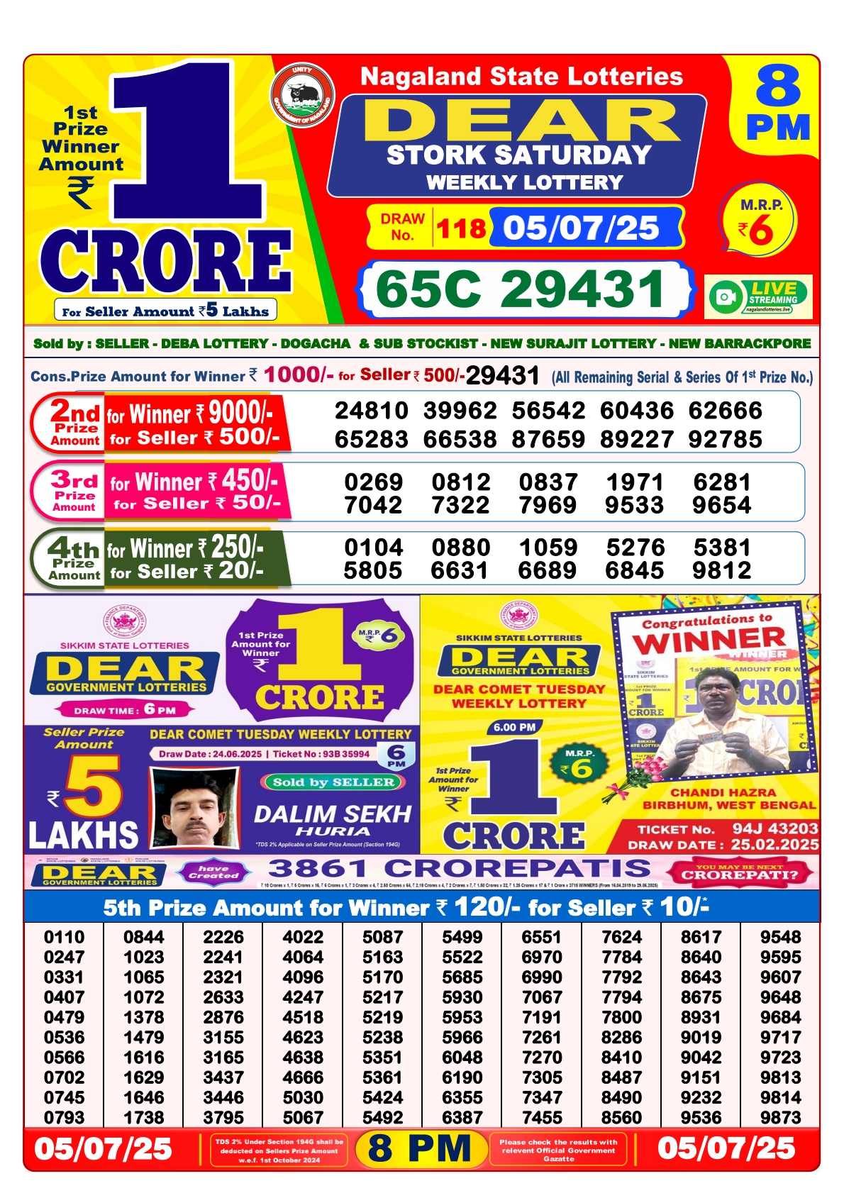 डिअर लाटरी का रात 8 बजे का रिज़ल्ट दिनांक 05.12.25