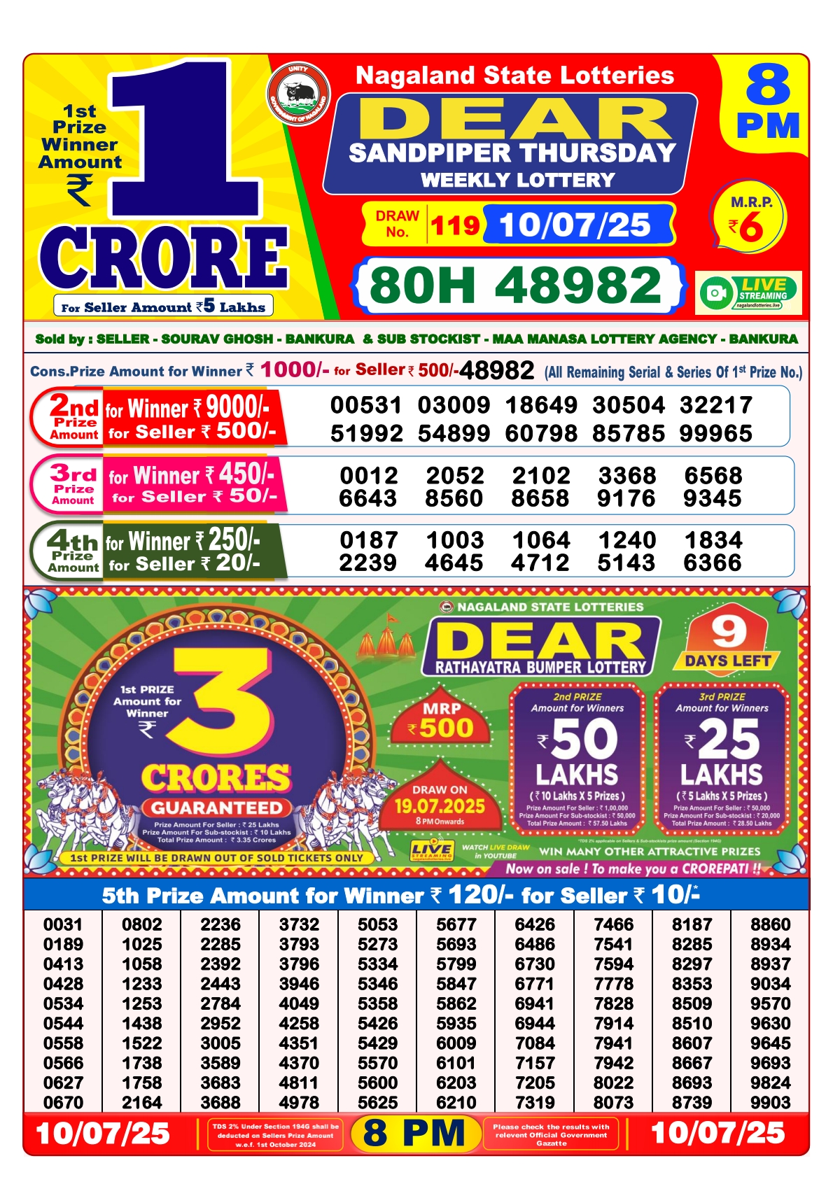 डिअर लाटरी का रात 8 बजे का रिज़ल्ट दिनांक 10.12.25