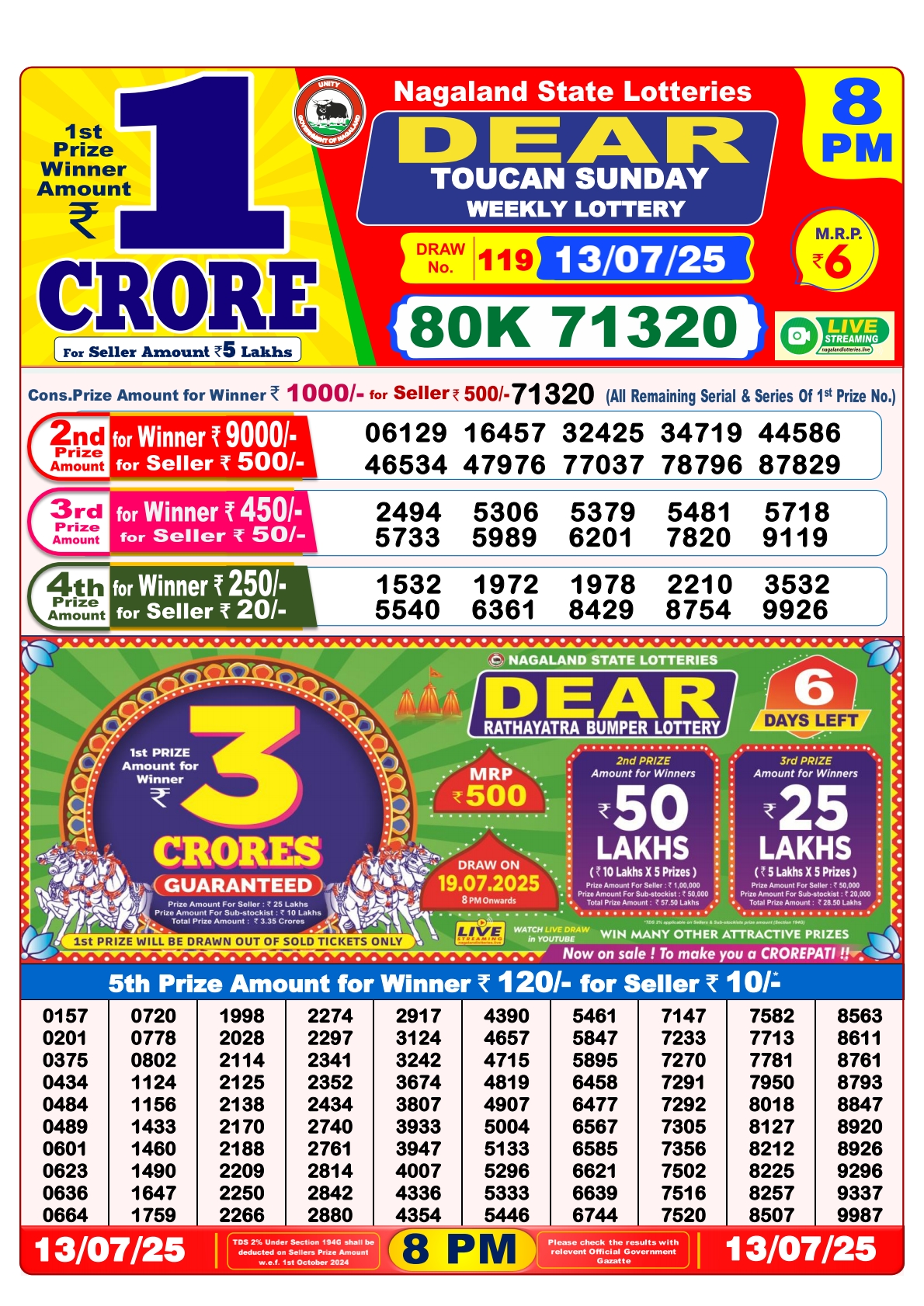 डिअर लाटरी का रात 8 बजे का रिज़ल्ट दिनांक 13.11.25