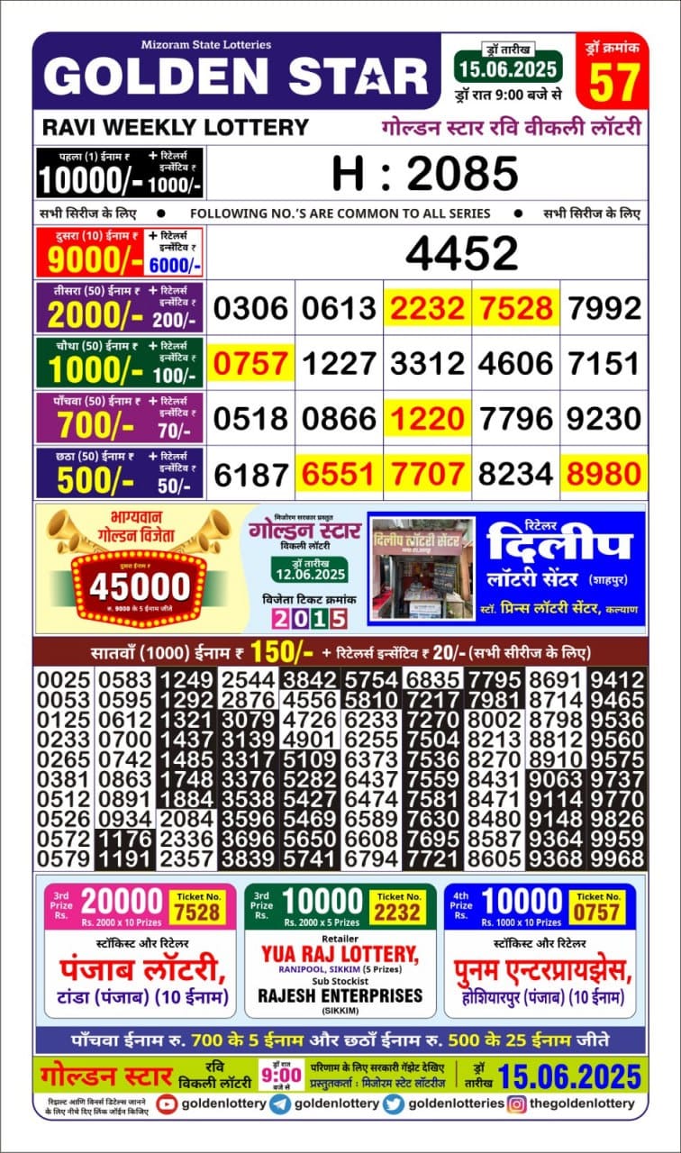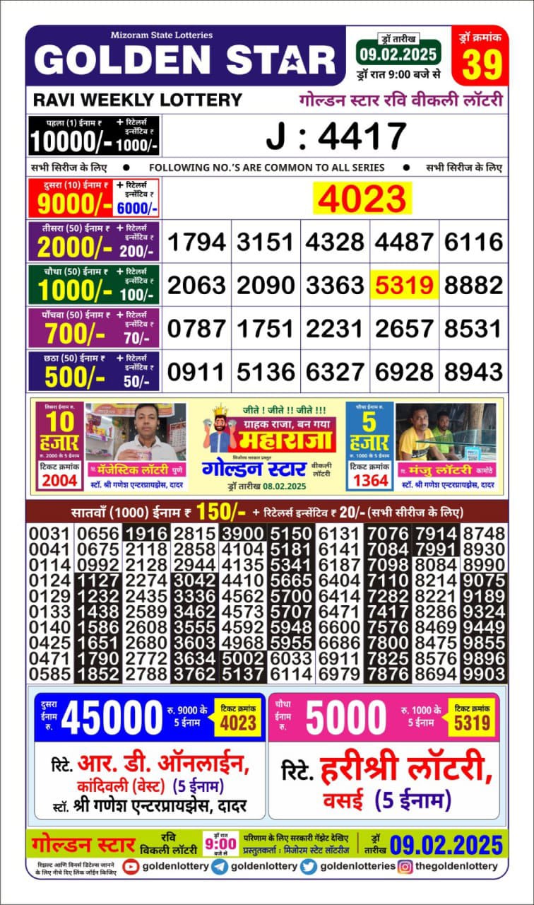 गोल्डन लाटरी का रात 9 बजे का रिज़ल्ट दिनांक 23.10.25