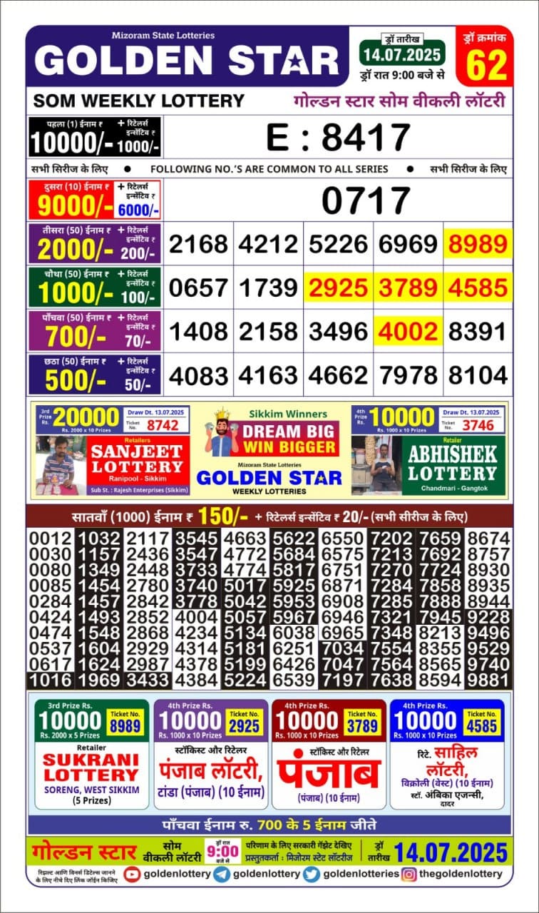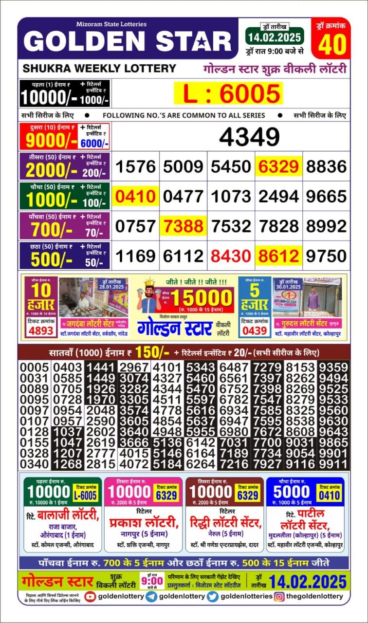 गोल्डन लाटरी का रात 9 बजे का रिज़ल्ट दिनांक 14.10.25