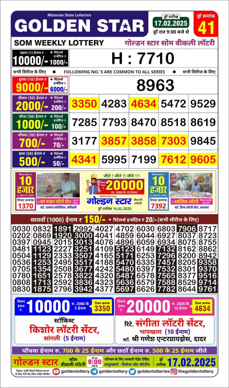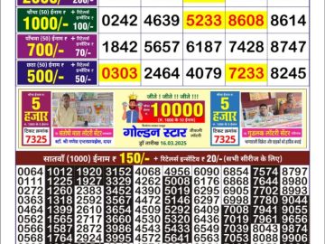गोल्डन लाटरी का रात 9 बजे का रिज़ल्ट दिनांक 17.11.25